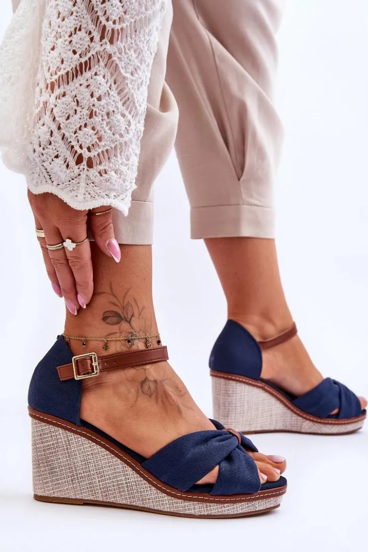 Wygodne sandały na modnym koturnie to klasyka wśród damskiego, letniego obuwia. Wkładka oraz wierzch wykonane zostały z tkaniny. Zapiętek został wzmocniony. Buty posiadają zapięcie na regulowany pasek ze sprzączką. Podeszwa w tych sandałkach jest wykonana z tworzywa i jest antypoślizgowa. Te sandały to idealny wybór do letnich stylizacji. Przy wyborze rozmiaru prosimy sugerować się tabelą rozmiarów.