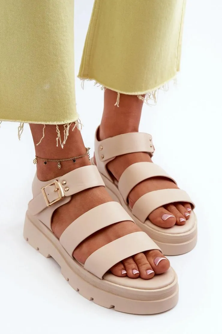 Modne sandały damskie na grubej podeszwie wykonane z eko skóry to idealny wybór na letnie dni. Zapinane na regulowany pasek ze sprzączką, gwarantują doskonałe dopasowanie do stopy. Dodatkowo ich designerski wygląd sprawia, że doskonale komponują się z różnymi stylizacjami, dodając im nuty nowoczesności i świeżości. Przy wyborze rozmiaru prosimy sugerować się tabelą rozmiarów.