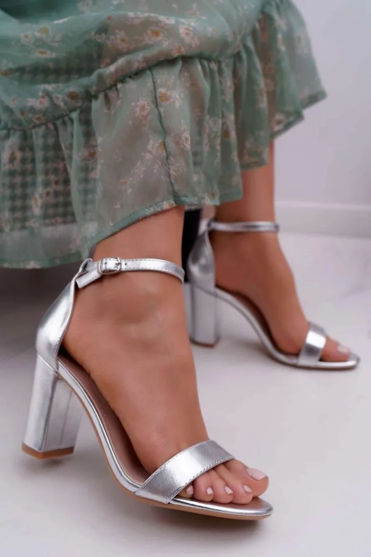 New Boto Sandały Damskie Na Słupku Klasyczne Srebrne Fiji