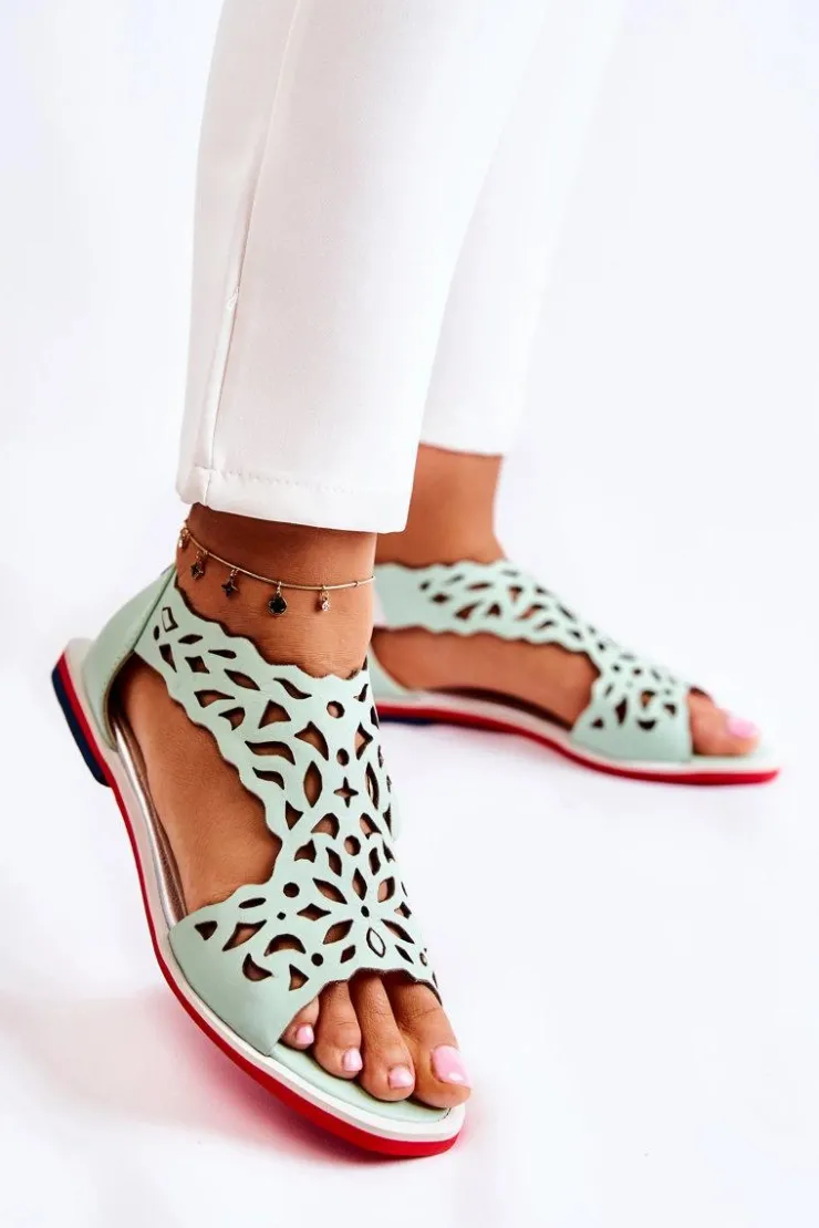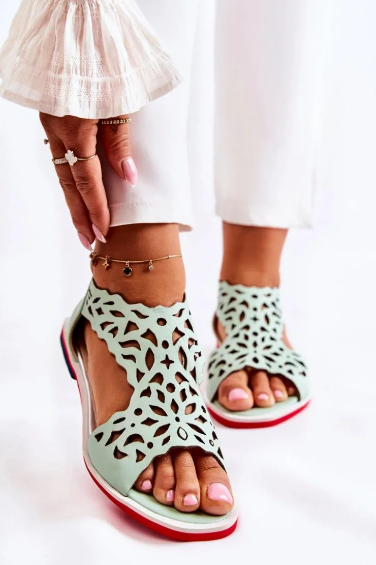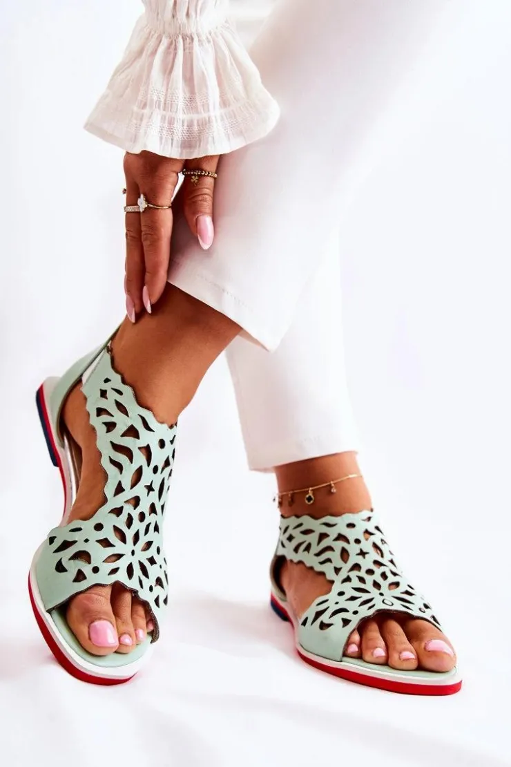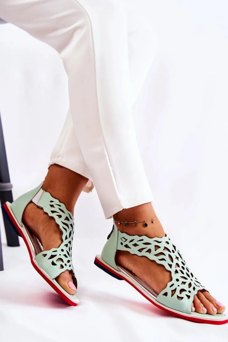 Damskie sandały zostały wykonane z naturalnej skóry w ażurowy wzór. Z boku cholewki posiadają gumkę. Zapiętek usztywniany z suwakiem. Buty są osadzone na płaskim obcasie. Sandały posiadają odkryty nosek. Miękka wkładka została także wykonana z naturalnej skóry. Lekki i przewiewny fason świetnie sprawdzi się w upalne dni. Koniecznie powinnaś je mieć! Przy wyborze rozmiaru prosimy sugerować się tabelą rozmiarów.