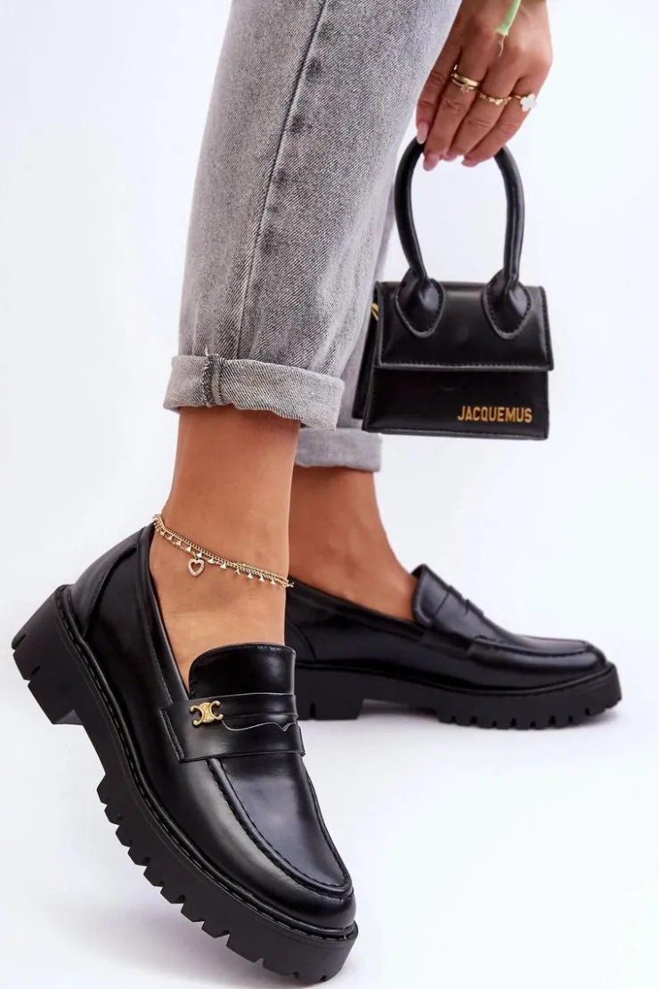 Damskie mokasyny to idealne obuwie na wiele okazji! Osadzono je na platformie i płaskim obcasie. Buty te posiadają delikatnie usztywniany zapiętek oraz wkładkę z eko skóry. Pasku z przodu posiada wycięcie oraz delikatną ozdobę. Ten model z pewnością przypadnie Ci do gustu! Przy wyborze rozmiaru prosimy sugerować się tabelą rozmiarów.