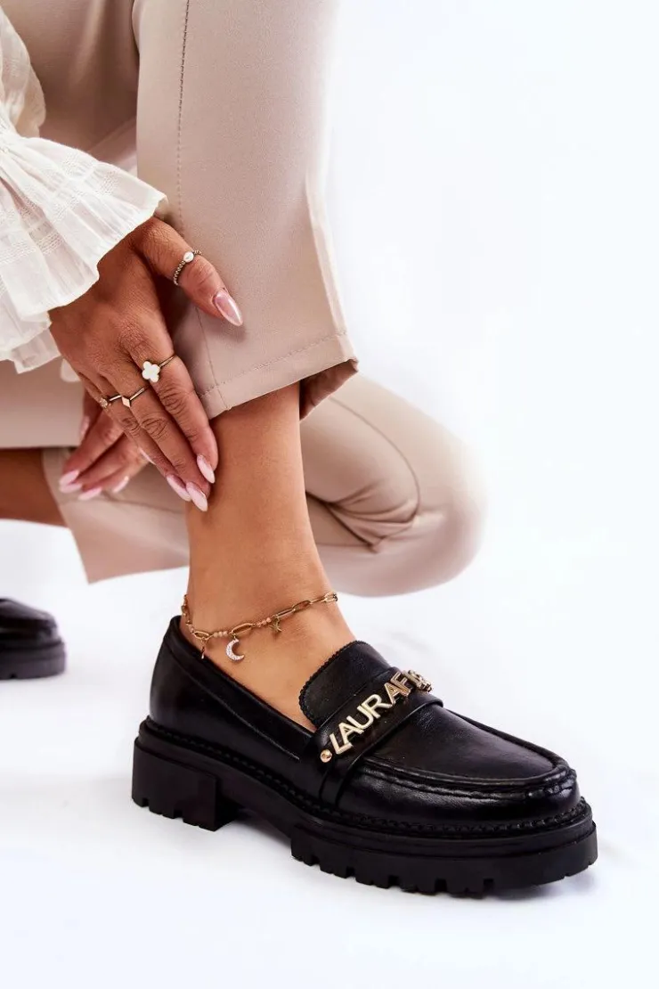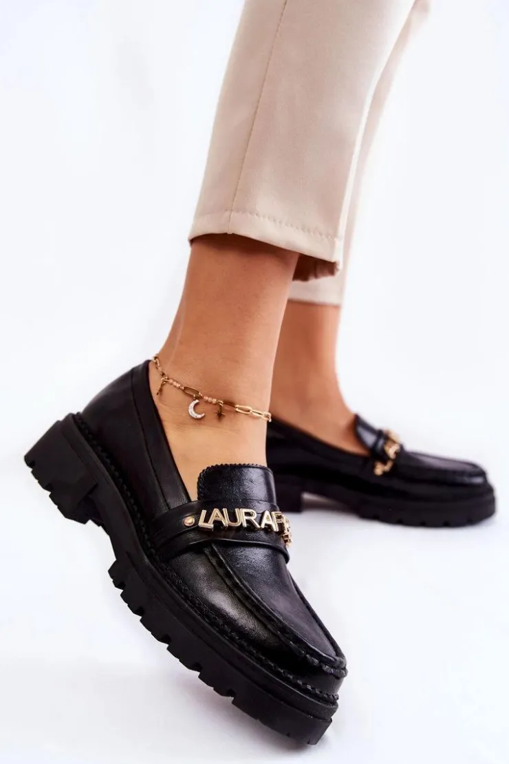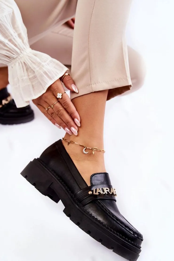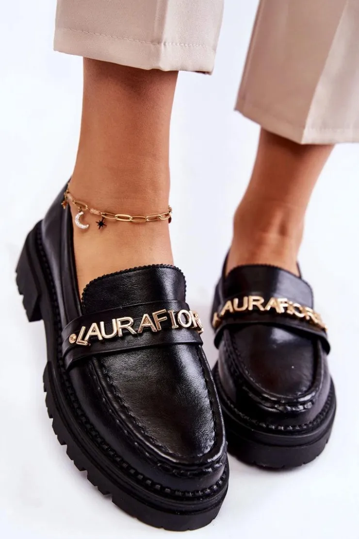 Klasyczne półbuty w stylu przepięknych loaferów marki Laura Fiore! Buty zostały wykonane z wysokiej jakości eko skóry. Charakterystyczny paseczek z przesuwanymi literkami Laura Fiore wygląda naprawdę cudnie. Półbuty posiadają wysoką podeszwę oraz obcas, który uniesie naszą sylwetkę. Miękka, skórzana wkładka zadba o wygodę podczas noszenia. Przy wyborze rozmiaru prosimy sugerować się tabelą rozmiarów.