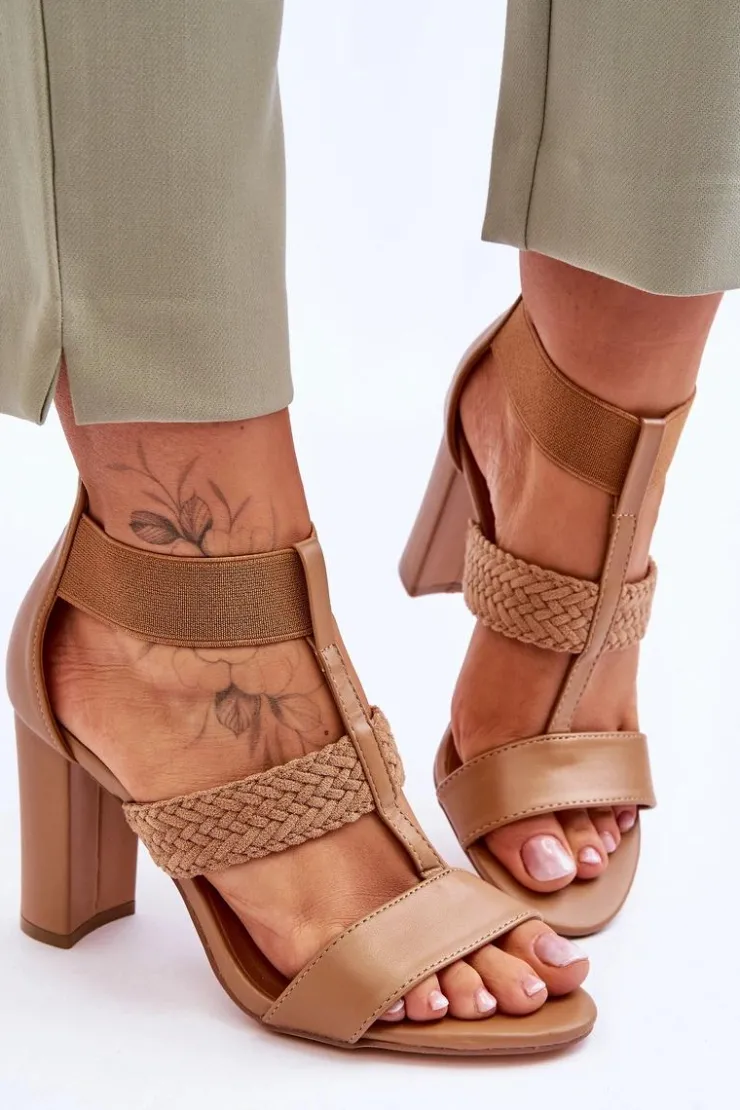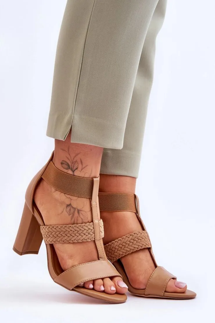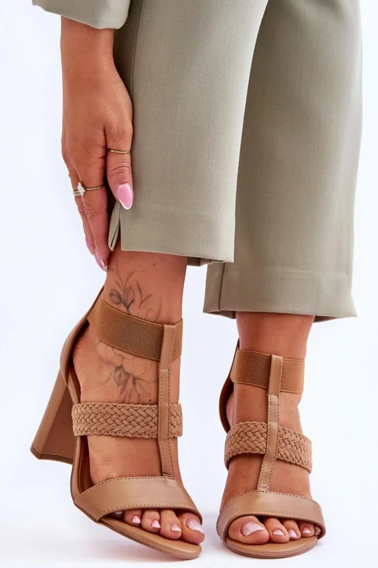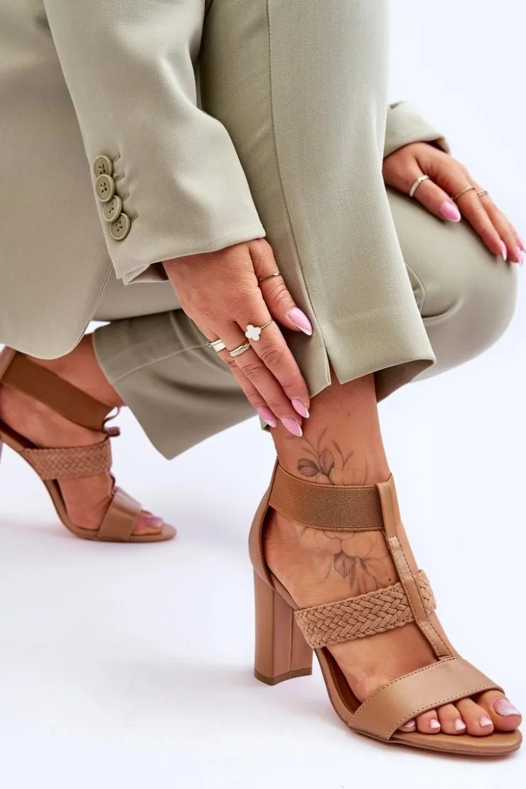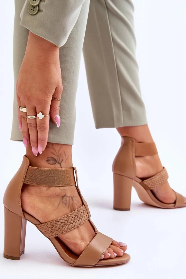 New Boto Skórzane Sandały Botki Na Obcasie Camel Marren