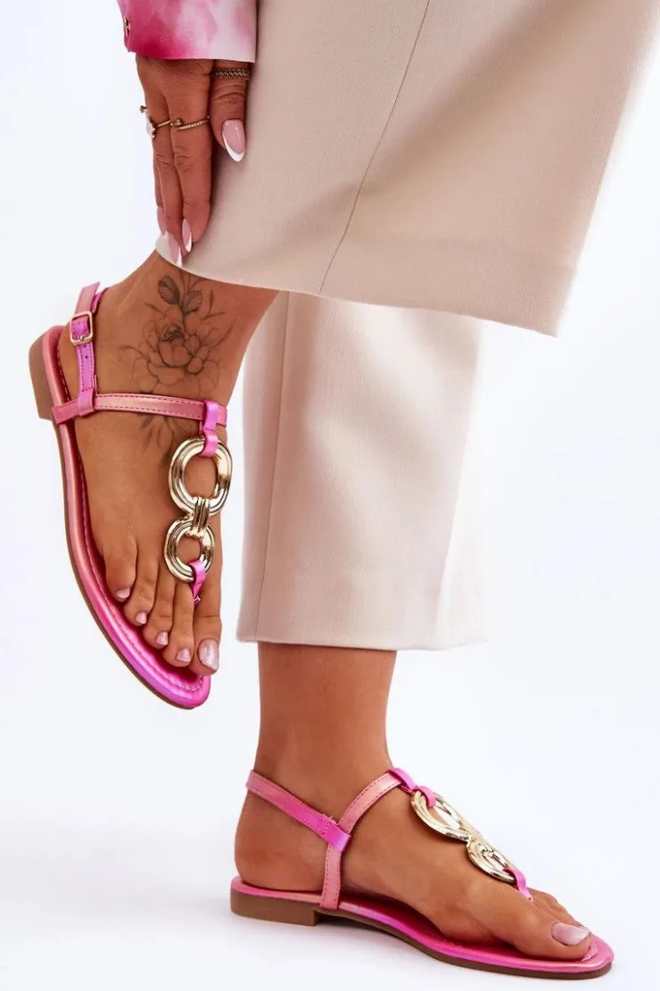 New Boto Skórzane Sandały Japonki Na Płaskim Obcasie Różowe Keep Going Różowy