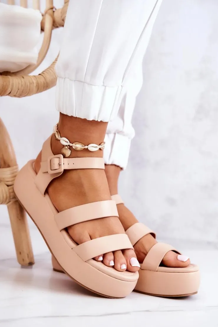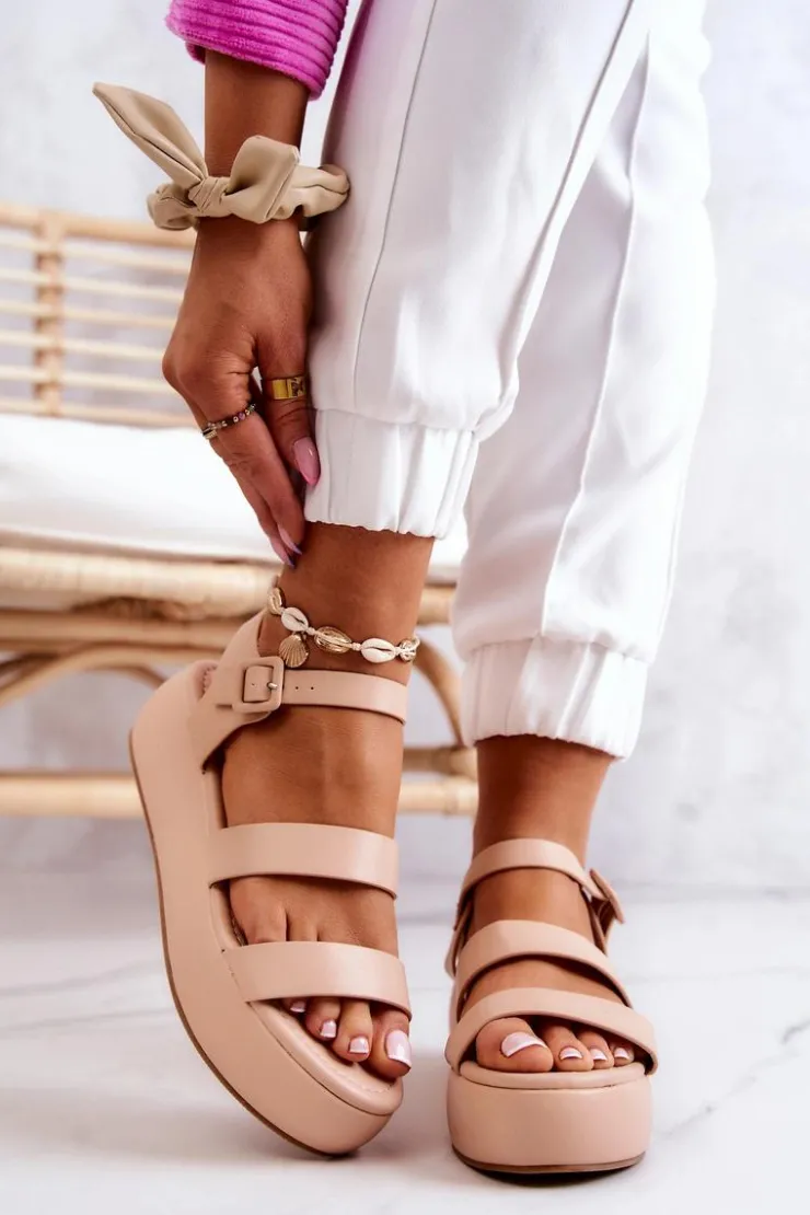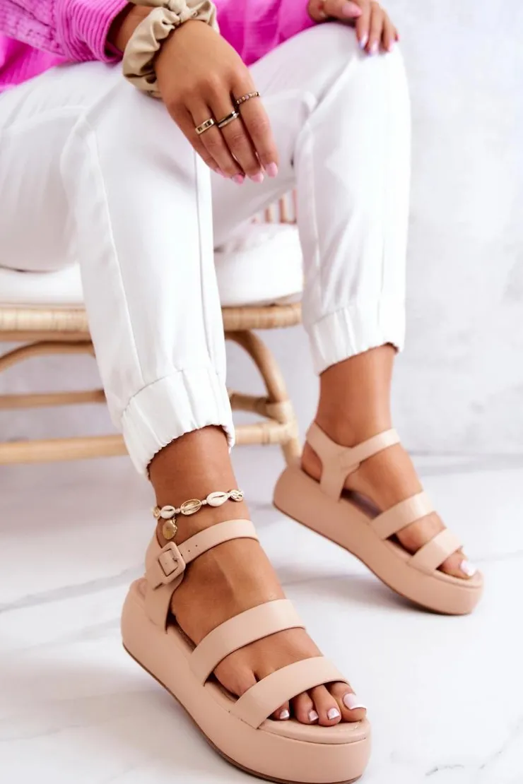 New Boto Skórzane Sandały Na Sprzączkę Beżowe Graceful