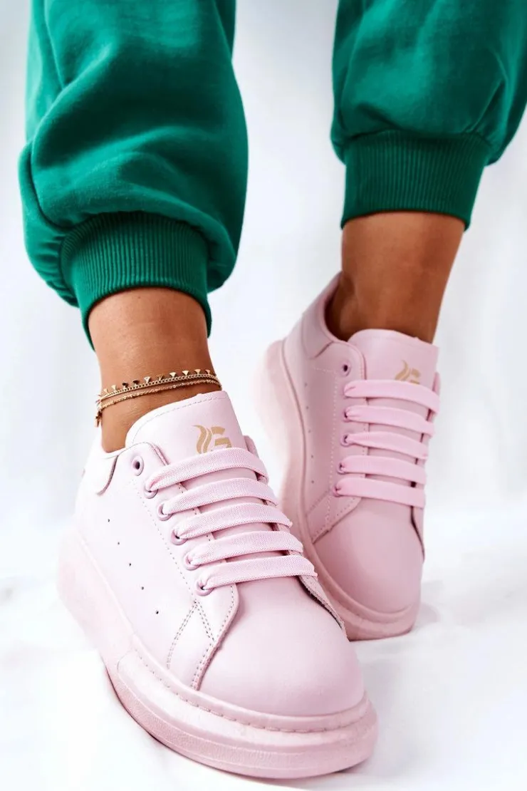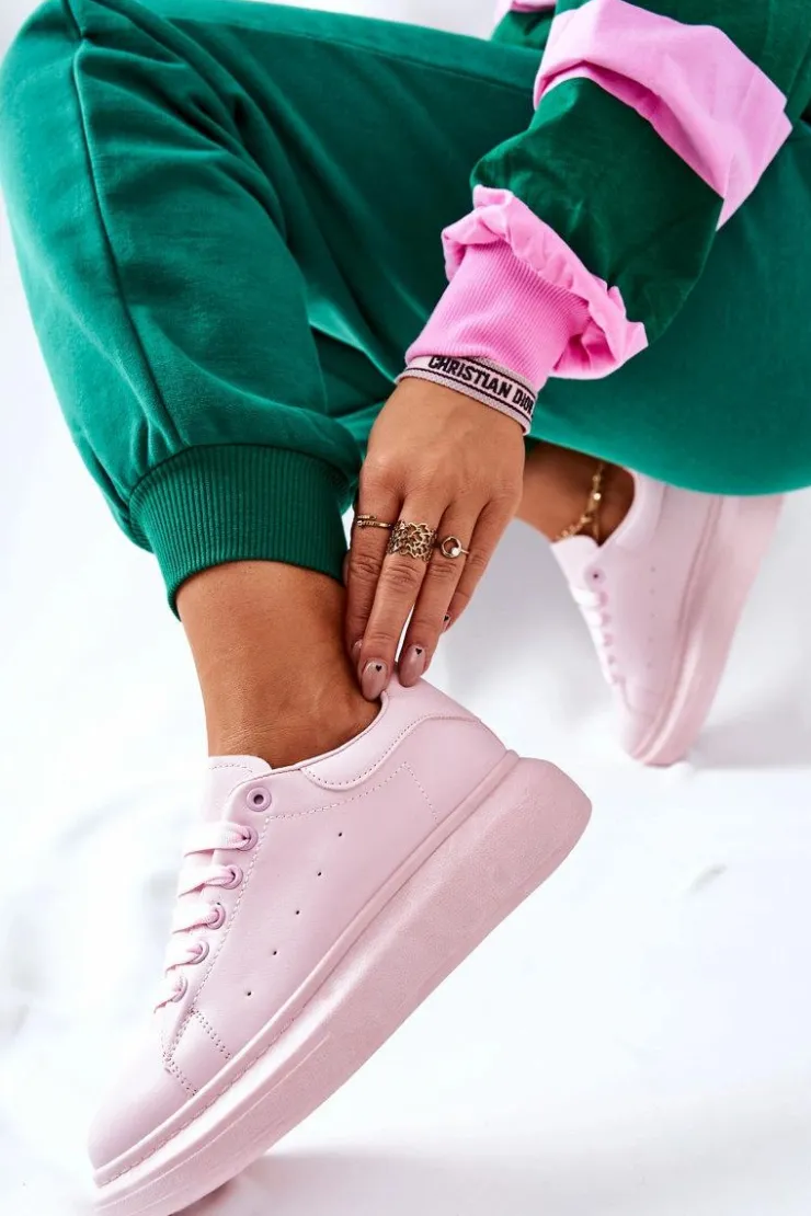 Modne buty sportowe zostały wykonane z eko skóry. Posiadają wysoką platformę. Na języku widnieje ozdobne logo. Sznurówki w kolorze obuwia. Sportowe buty to MUST HAVE każdej osoby ceniącej sobie komfort i wygodę. Nie czekaj aż znikną i kup je już dziś! Nie przegap takiej okazji! Przy wyborze rozmiaru prosimy kierować się tabelą rozmiarów.