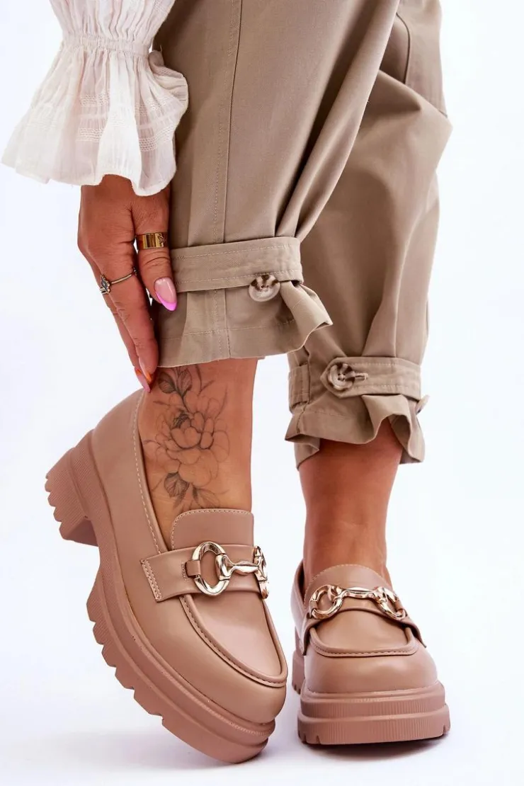 Klasyczne, damskie mokasyny, które świetnie sprawdzą się w wielu stylizacjach! Zostały osadzone na płaskim obcasie i platformie. Posiadają z przodu ozdobę z tworzywa sztucznego. Model ten został wykonany z eko skóry. Zapiętek w tych butach jest delikatnie usztywniany. Z pewnością wykorzystasz je w sezonie wiosenno-jesiennym! Przy wyborze rozmiaru prosimy sugerować się tabelą rozmiarów.