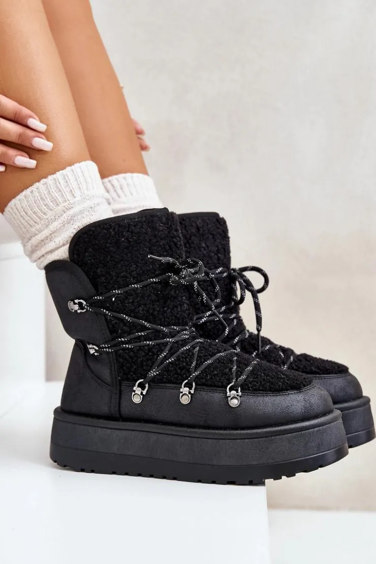 Damskie śniegowce na masywnej platformie, która doskonale odizoluje od zimnego podłoża. Środek ocieplony grubym futerkiem, co zapewni ciepło w mroźne dni. Cholewka z wiązaniem i syntetycznym kożuszkiem. Koniecznie powinnaś je mieć w swojej zimowej garderobie! Przy wyborze rozmiaru prosimy sugerować się tabelą rozmiarów.