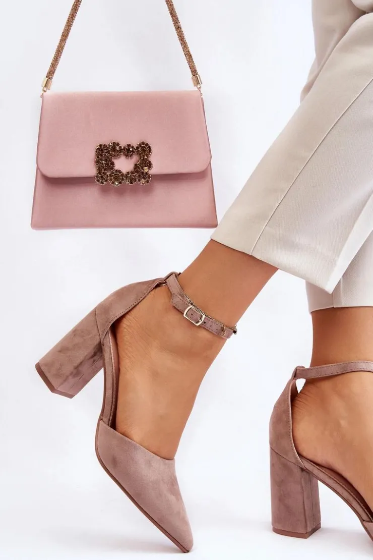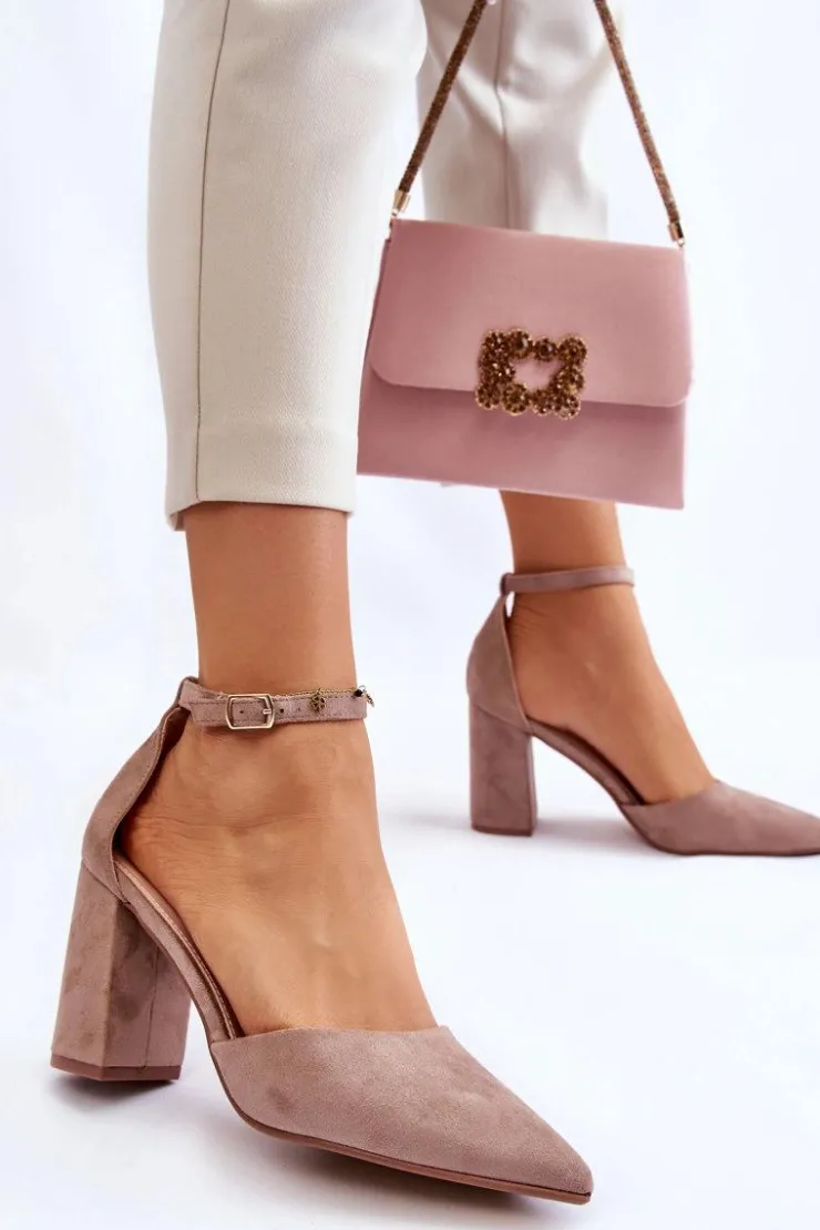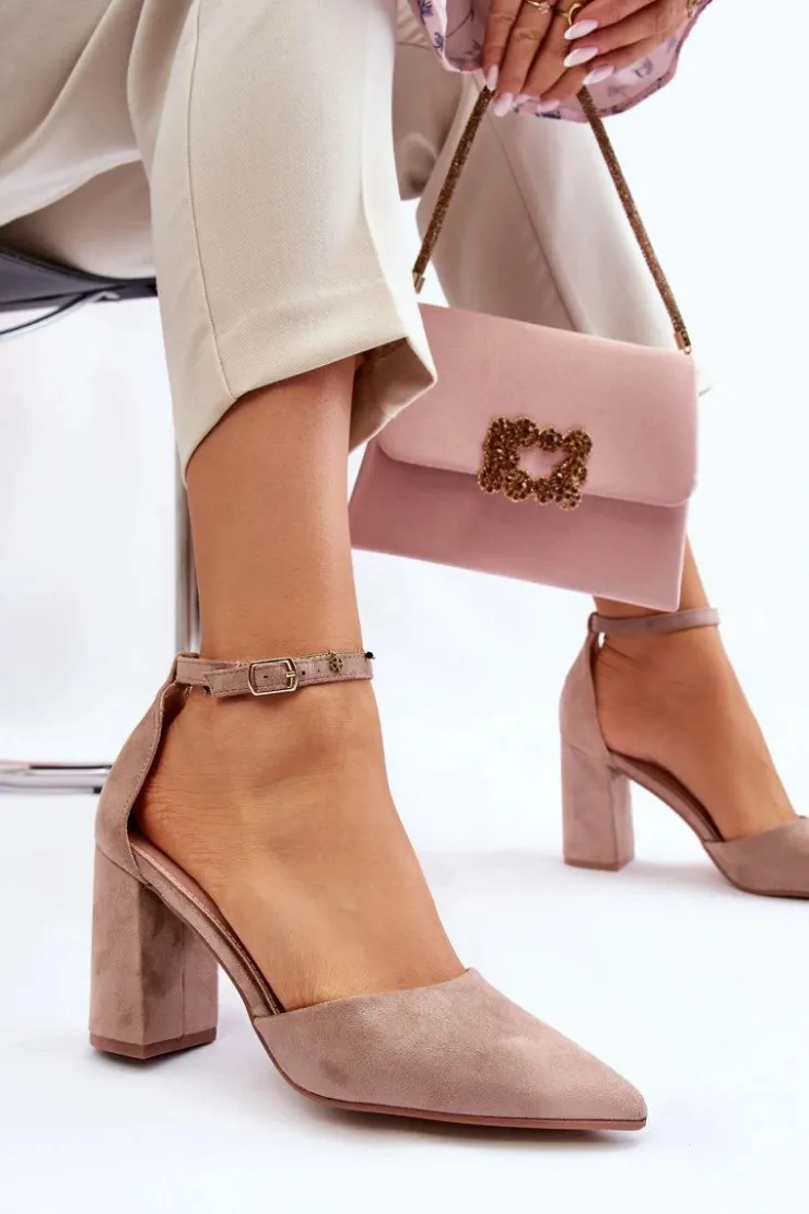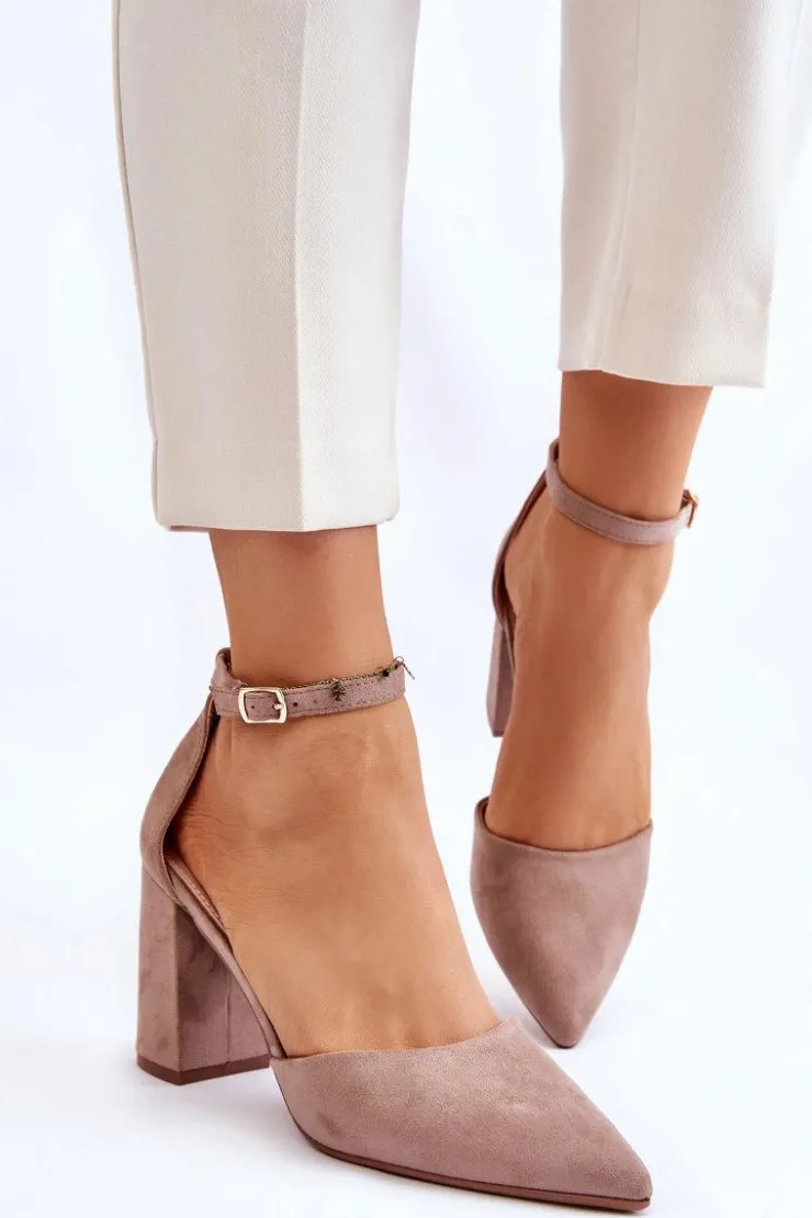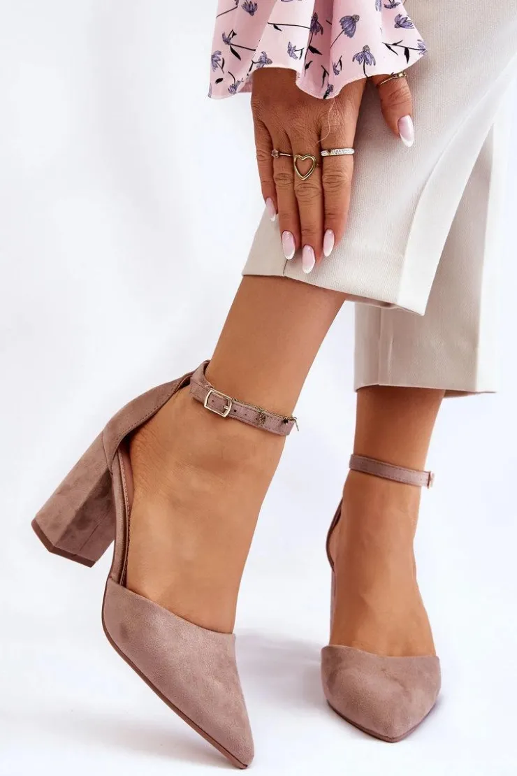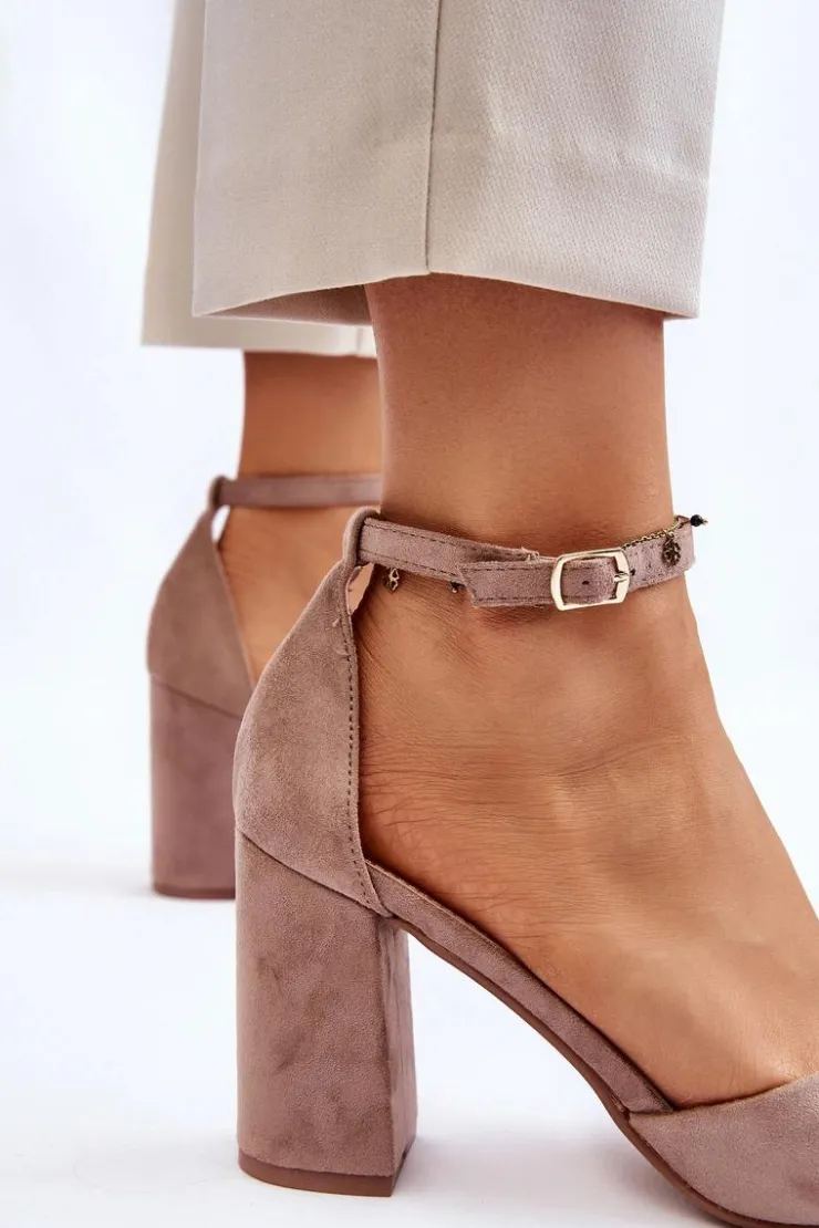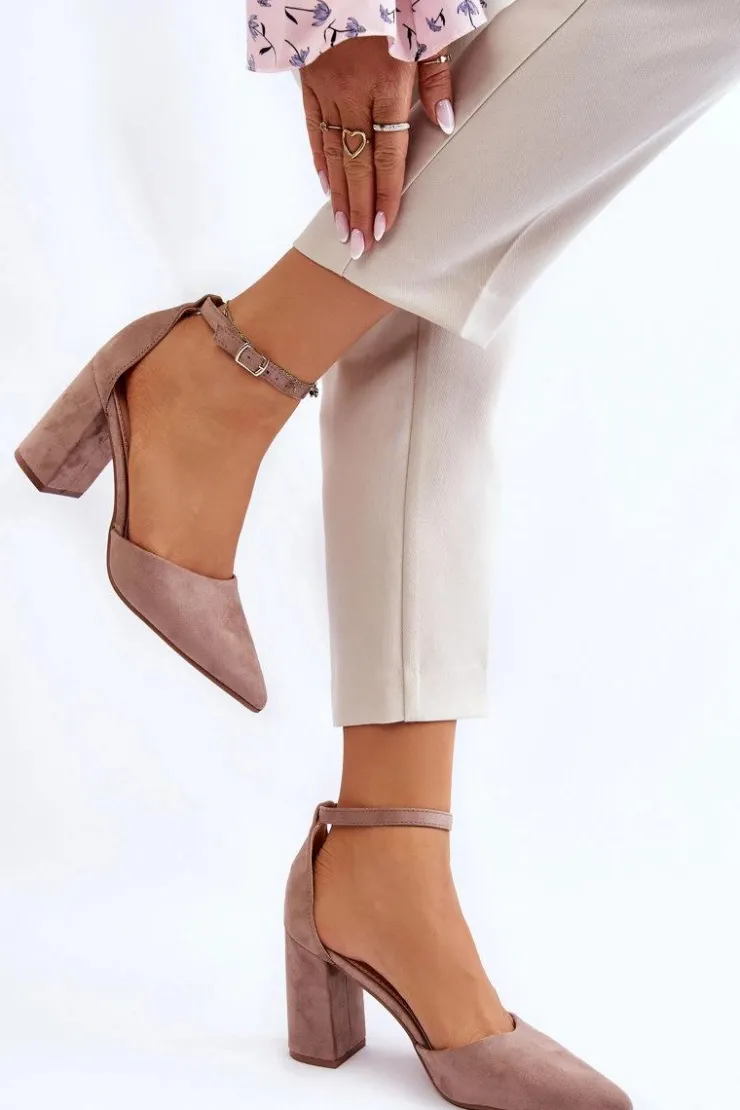 New Boto Zamszowe Czółenka Na Słupku Ciemnobeżowe Lexie