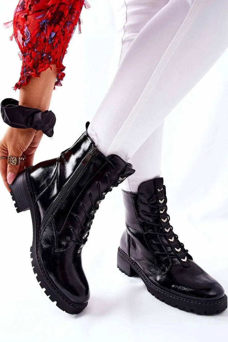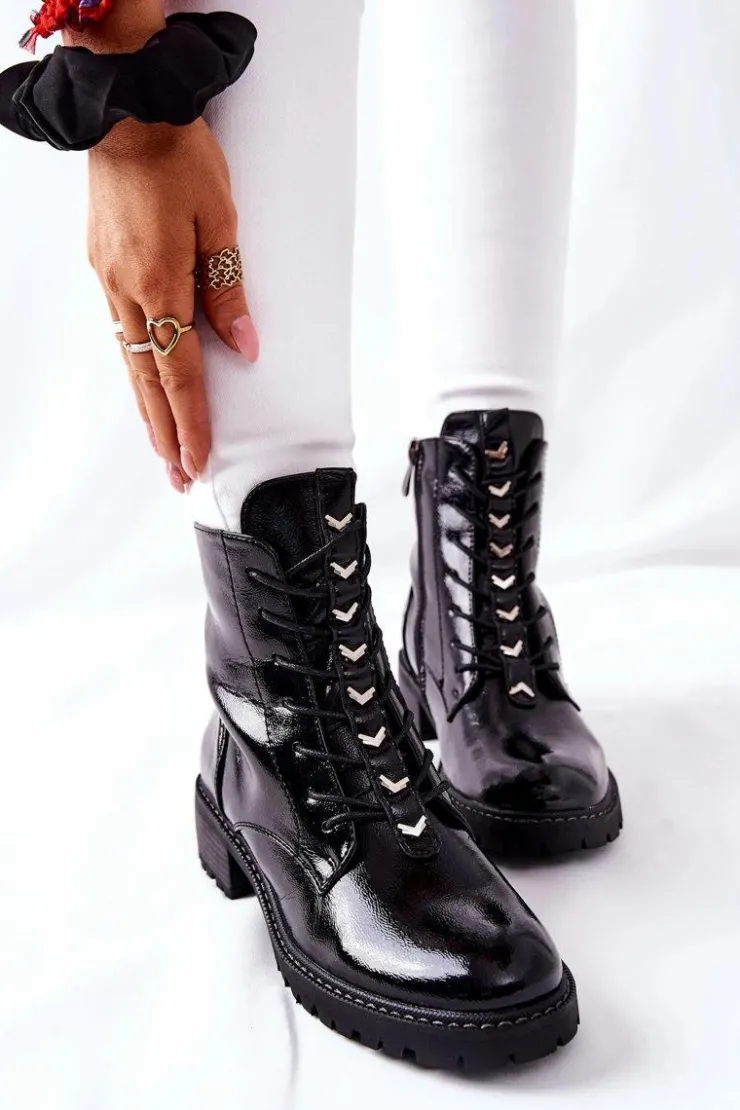 Wierzch wykonany z lakierowanej skóry ekologicznej. Suwak na boku ułatwi zakładanie. Ocieplane kocem obuwniczym. Przy wyborze rozmiaru prosimy sugerować się tabelą rozmiarów.