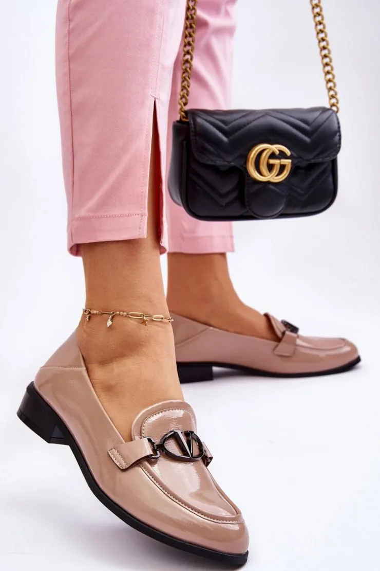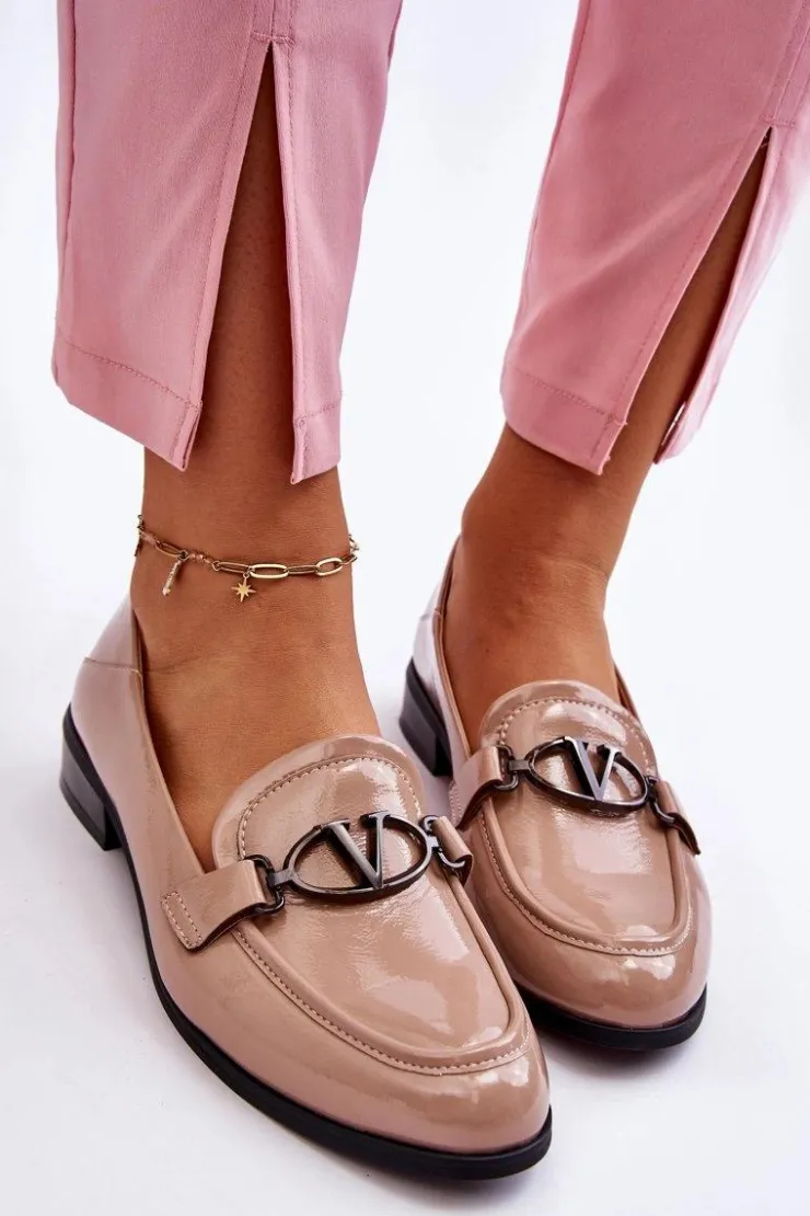 Świetne, klasyczne mokasyny zostały wykonane z wysokiej jakości eko skóry. Osadzone na płaskim obcasie. Miękka wkładka z naturalnej skóry zapewni wygodę podczas użytkowania. Z przodu cholewki znajduje się ozdobny element z literką „V” w elipsie. Idealne do wielu wiosenno-jesiennych stylizacji. Te mokasyny powinny być Twoje! Przy wyborze rozmiaru prosimy sugerować się tabelą rozmiarów.