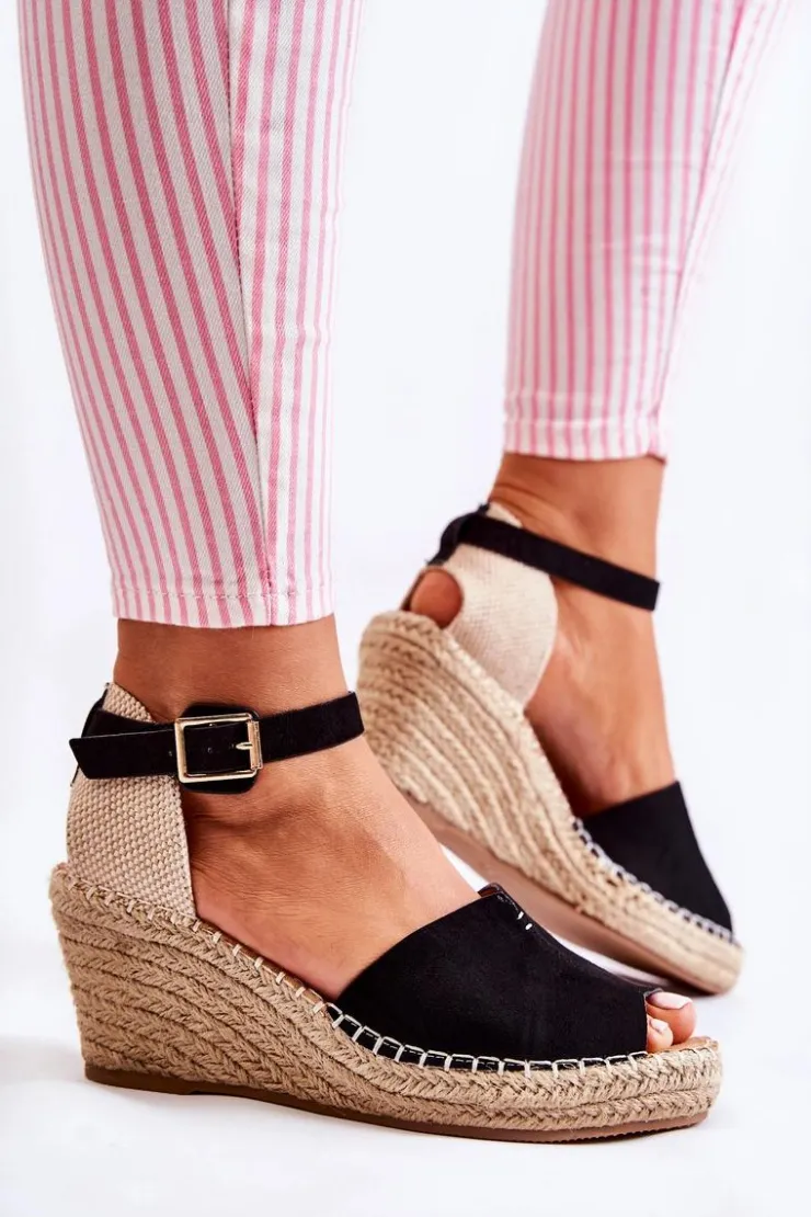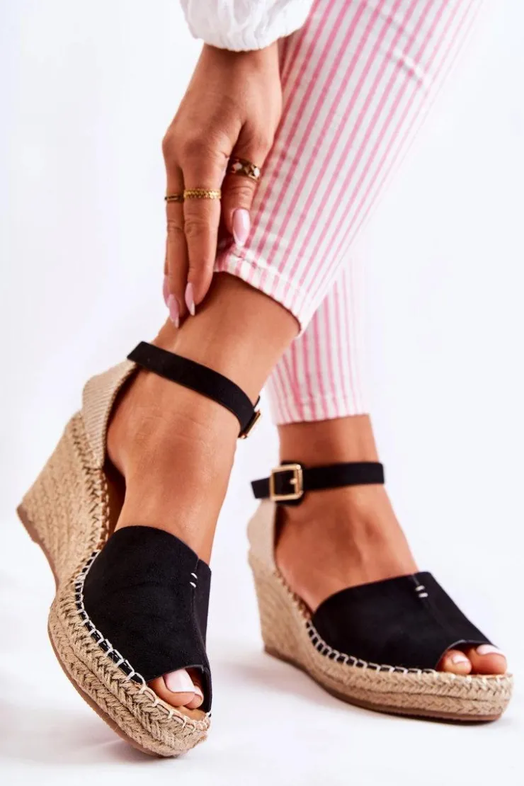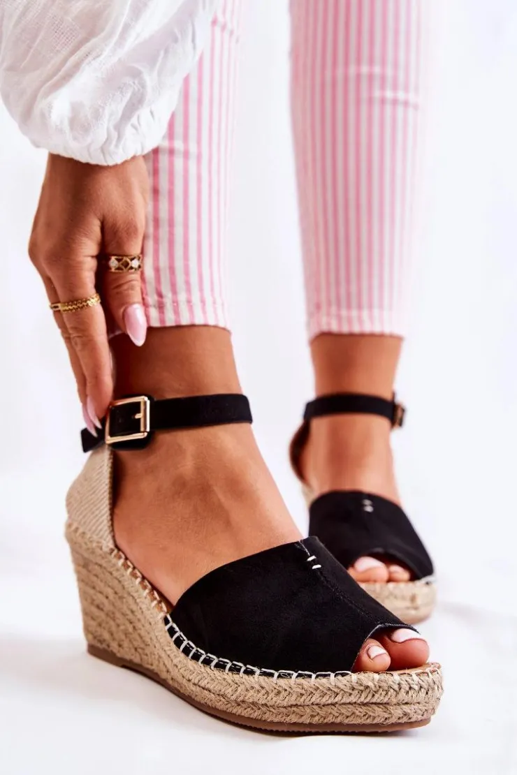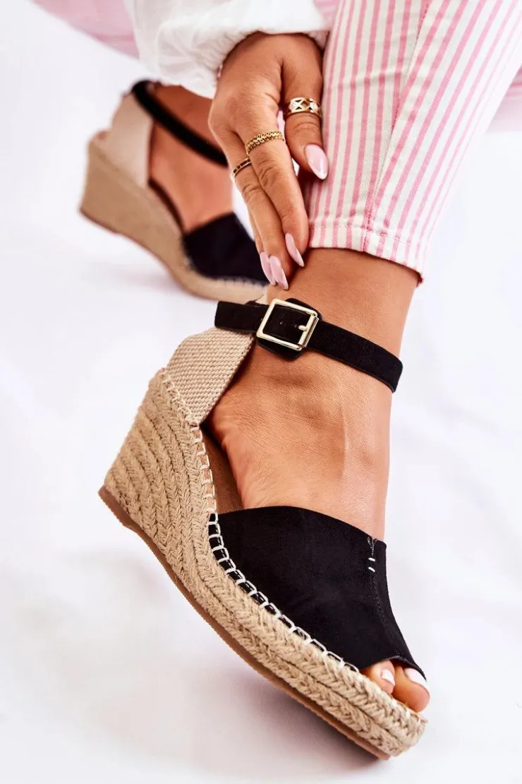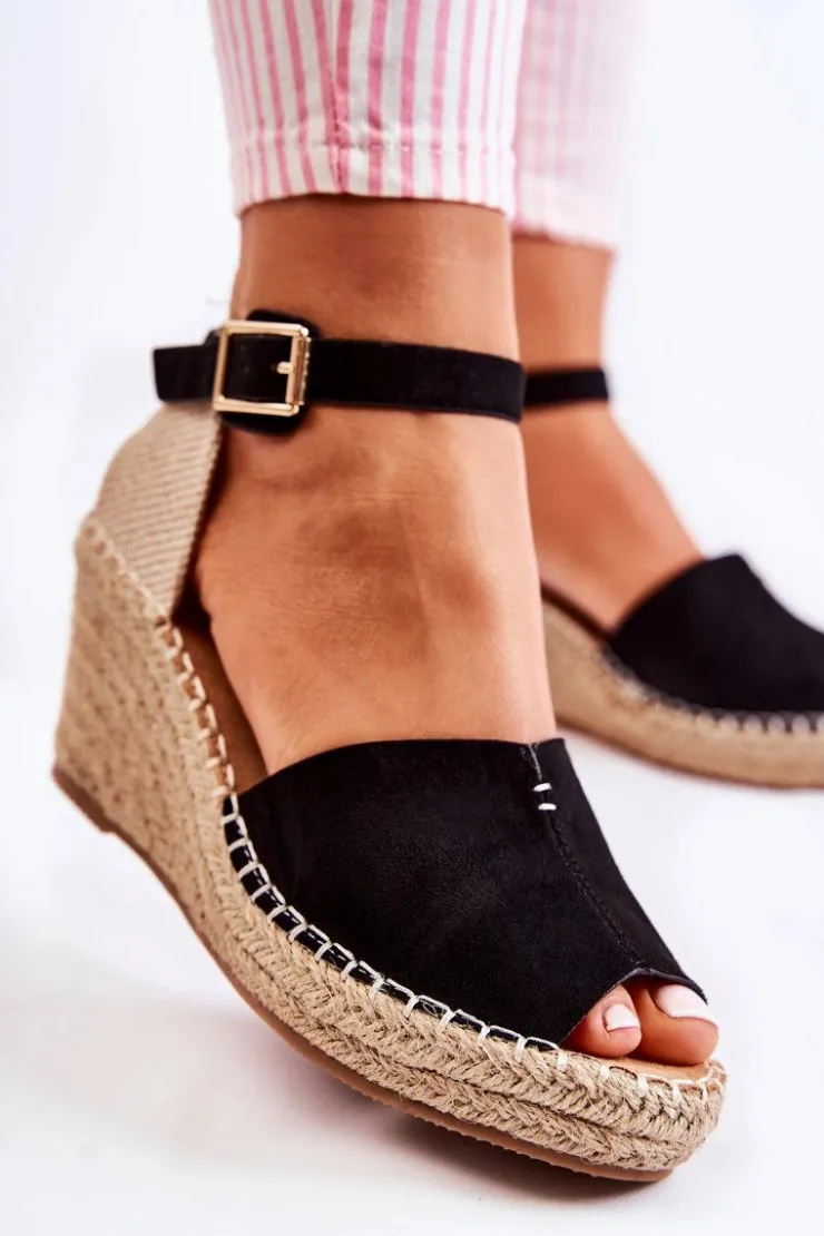 Modne i wygodne sandały osadzone na obcasie w postaci koturnu. Sandały posiadają antypoślizgową podeszwę wykonaną z gumowego tworzywa oraz koturn z plecionki. Buty wykonane z przyjemnego w dotyku eko zamszu oraz tkaniny. Posiadają regulowany pasek zapinany na sprzączkę wokół kostki. Sandałki posiadają odkrytą piętę i palce. Wkładka Comfort piankowa, o średniej gęstości, pokryta tkaniną jest bardzo miękka i odporna na ścieranie. Koniecznie sprawdź całą naszą ofertę damskich sandałów! Przy wyborze rozmiaru prosimy sugerować się tabelą rozmiarów.