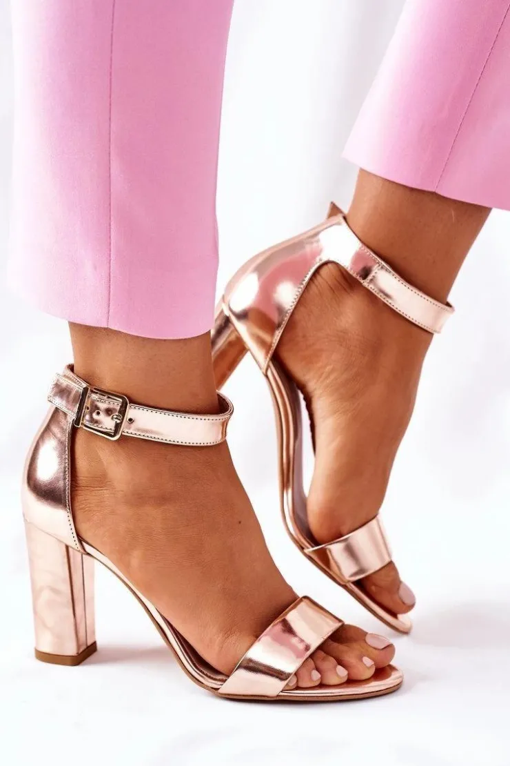 New Laura Messi Klasyczne Skórzane Sandały Na Słupku 1760 Champagne