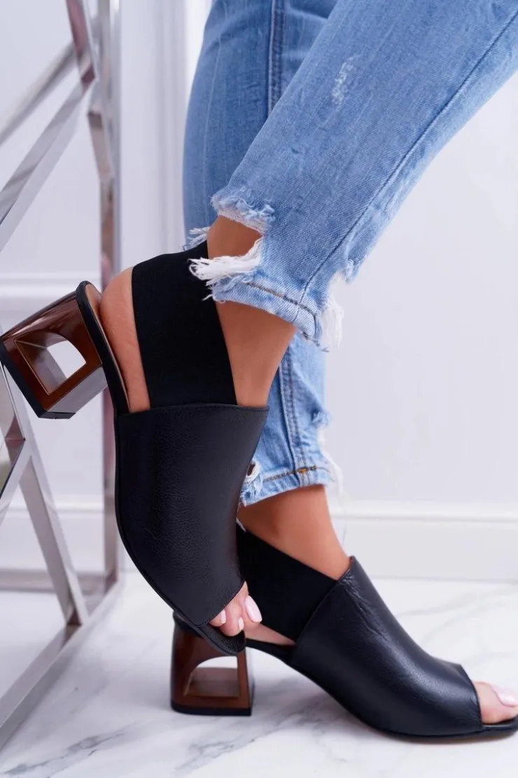 New Laura Messi Skórzane Sandały Ze Ściągaczem 1919 Czarne