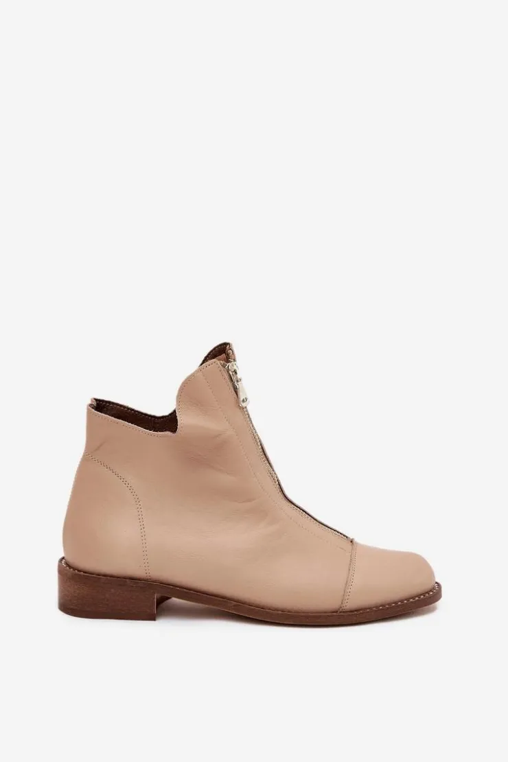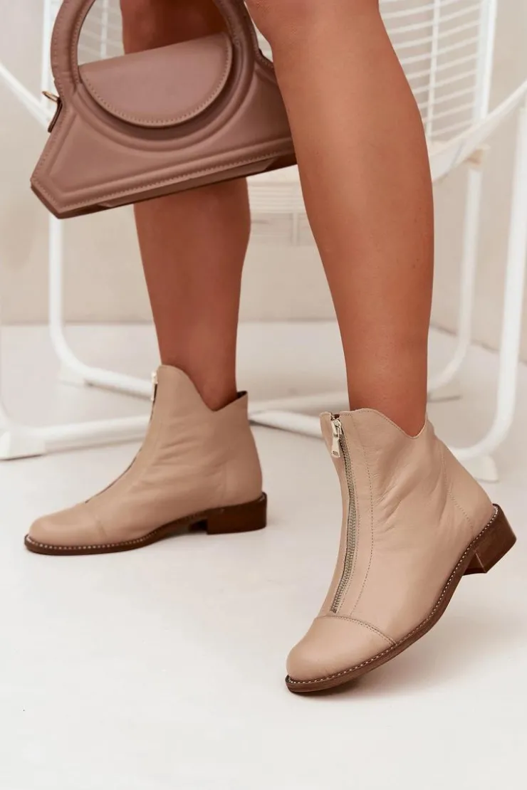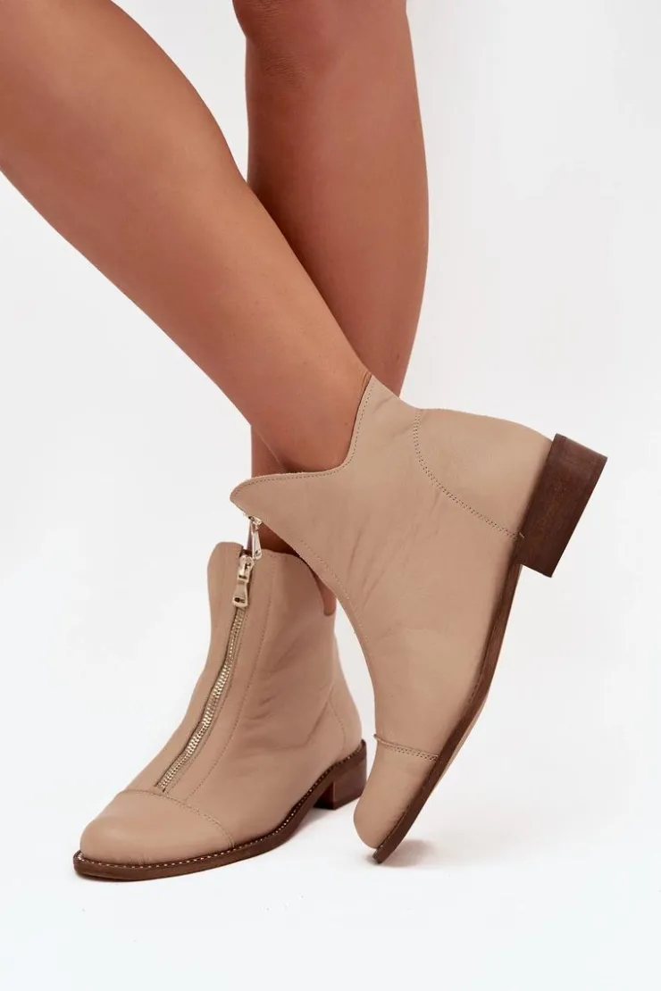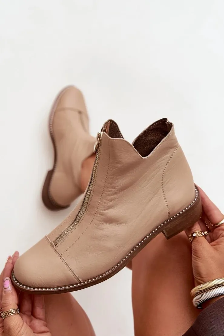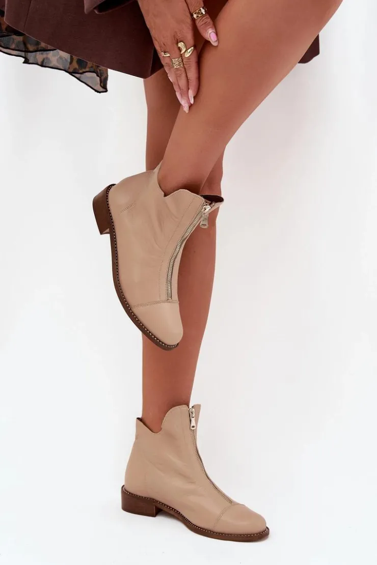 Modne botki damskie zostały wykonane z wysokiej jakości skóry naturalnej. Posiadają suwak na przodzie cholewki. Buty zostały osadzone na płaskim obcasie. Dodatkowo posiadają usztywniany zapiętek. Miękka, skórzana wkładka zapewni Ci wysoki komfort użytkowania przez cały dzień! Koniecznie powinnaś je mieć! Przy wyborze rozmiaru prosimy sugerować się tabelą rozmiarów.