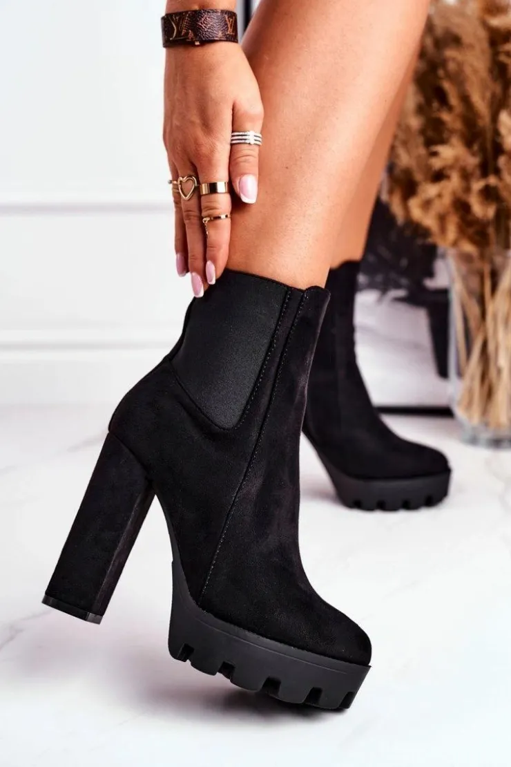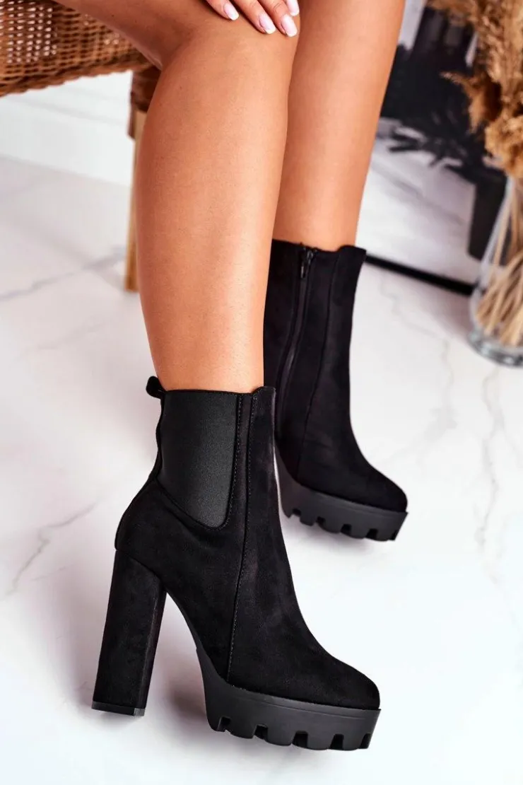 Online Boto Botki Damskie Na Słupku Eko-Zamsz Czarne Juliet