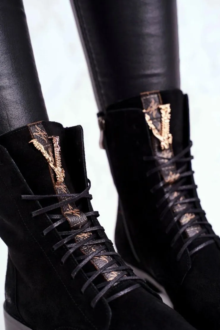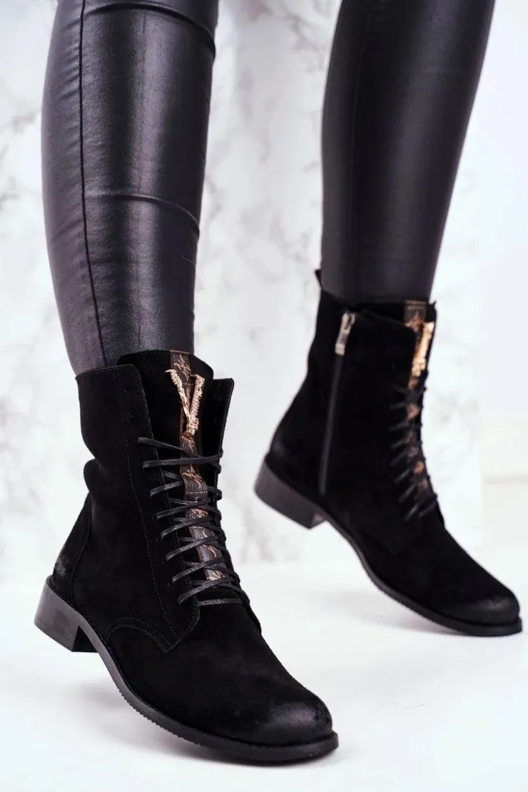Online Boto Botki Damskie Skórzane Nubuk Czarne Nicole 2593