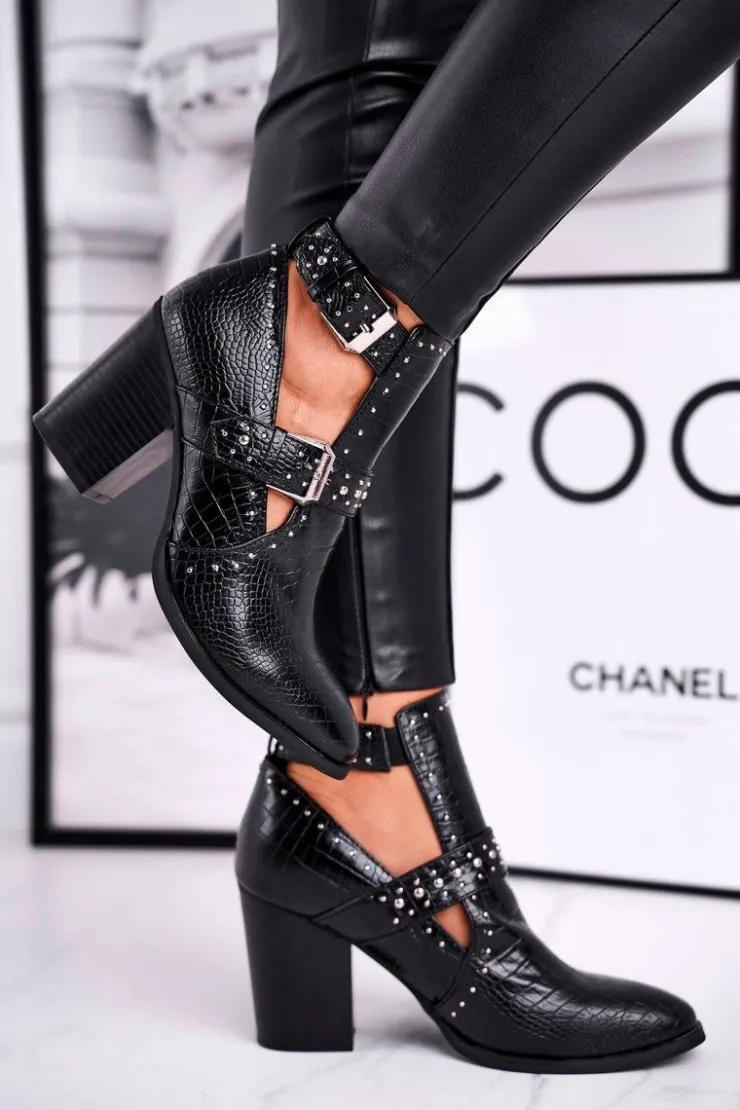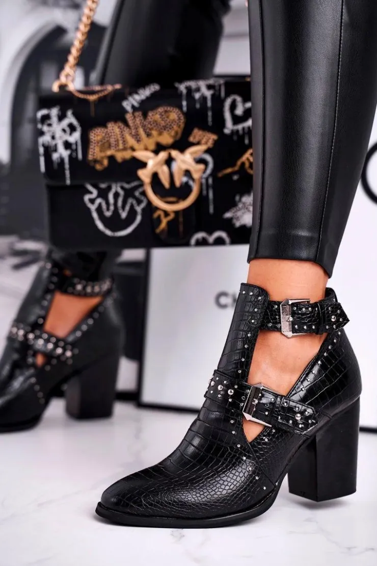 Online Boto Botki Damskie Z Wycięciami Croco Czarne Aria