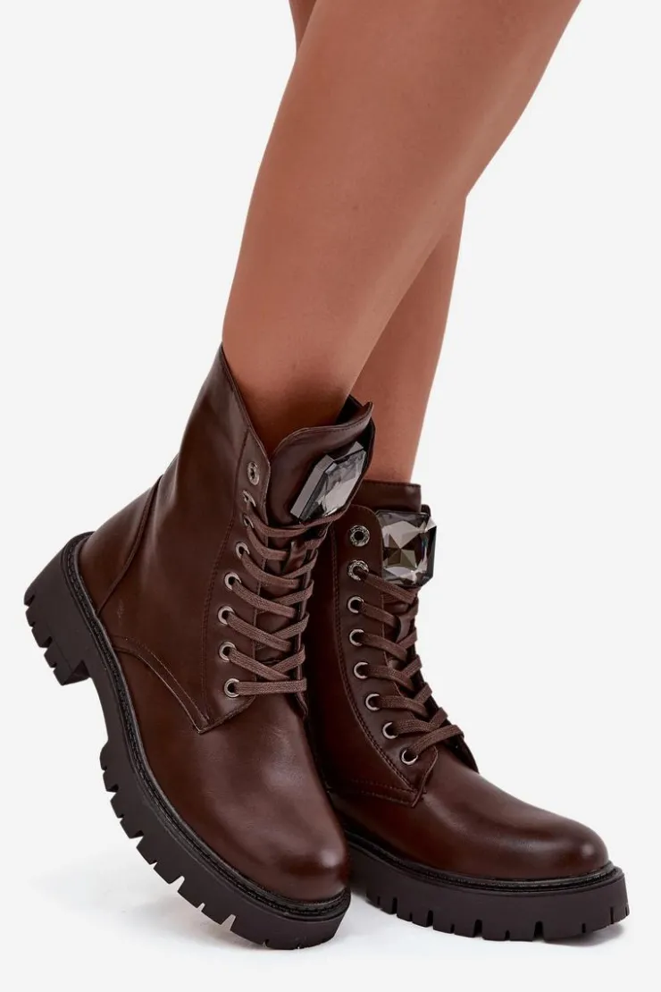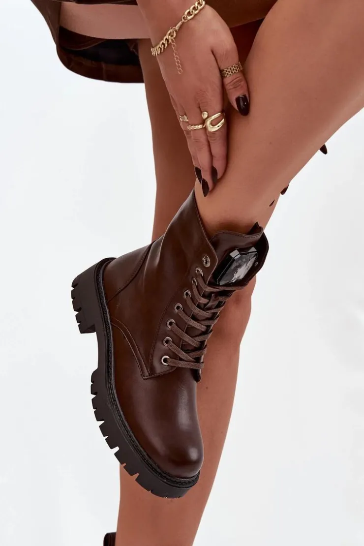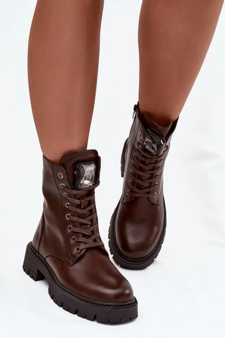 Online Boto Botki Workery Damskie Z Ozdoba Eko Skórzane Czekoladowe Karessa