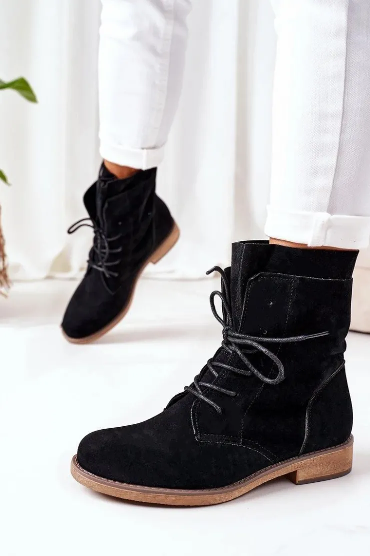 Botki damskie wykonane z eko zamszu z wyjątkową, podwójną cholewką. Wkładka jest ocieplana. Przy wyborze rozmiaru prosimy sugerować się tabelą rozmiarów.