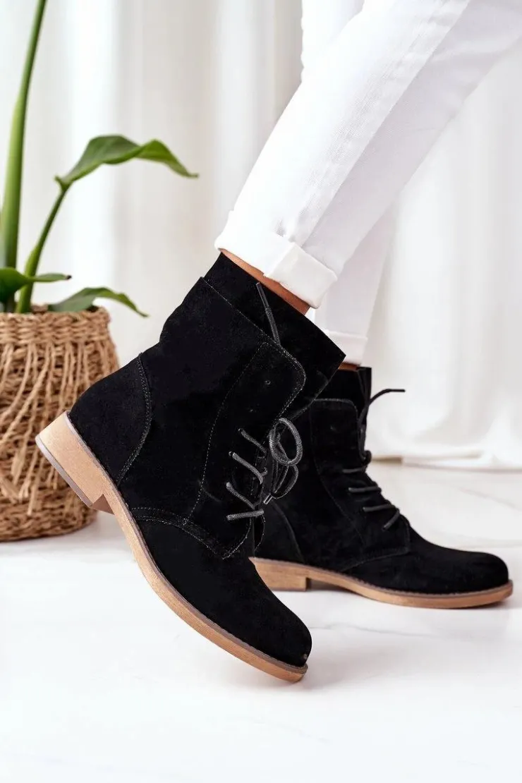 Clearance Boto Damskie Skórzane Klapki Z Ozdobą Czarne Roysa