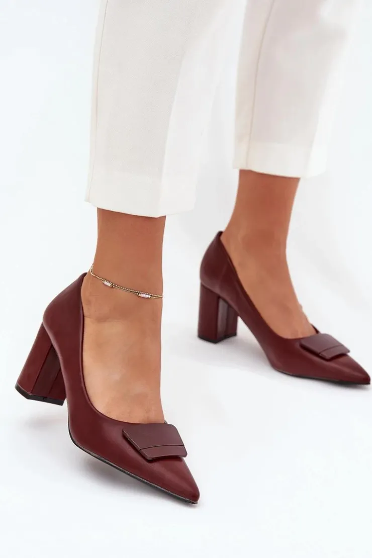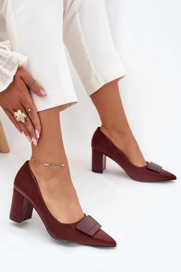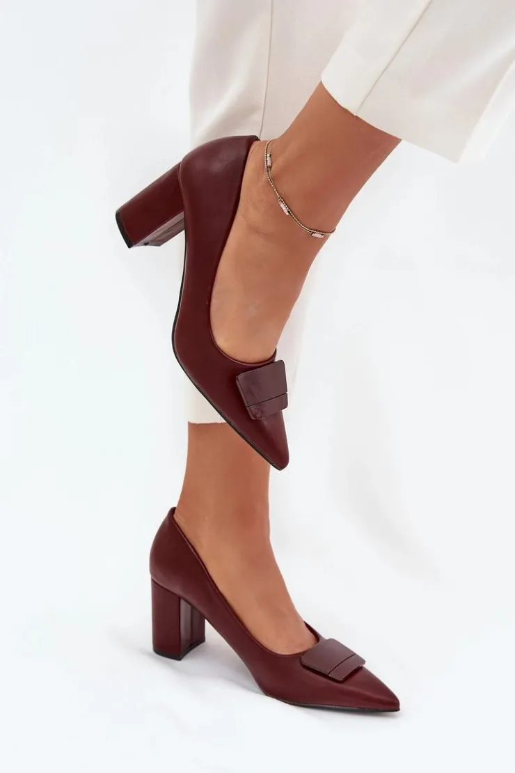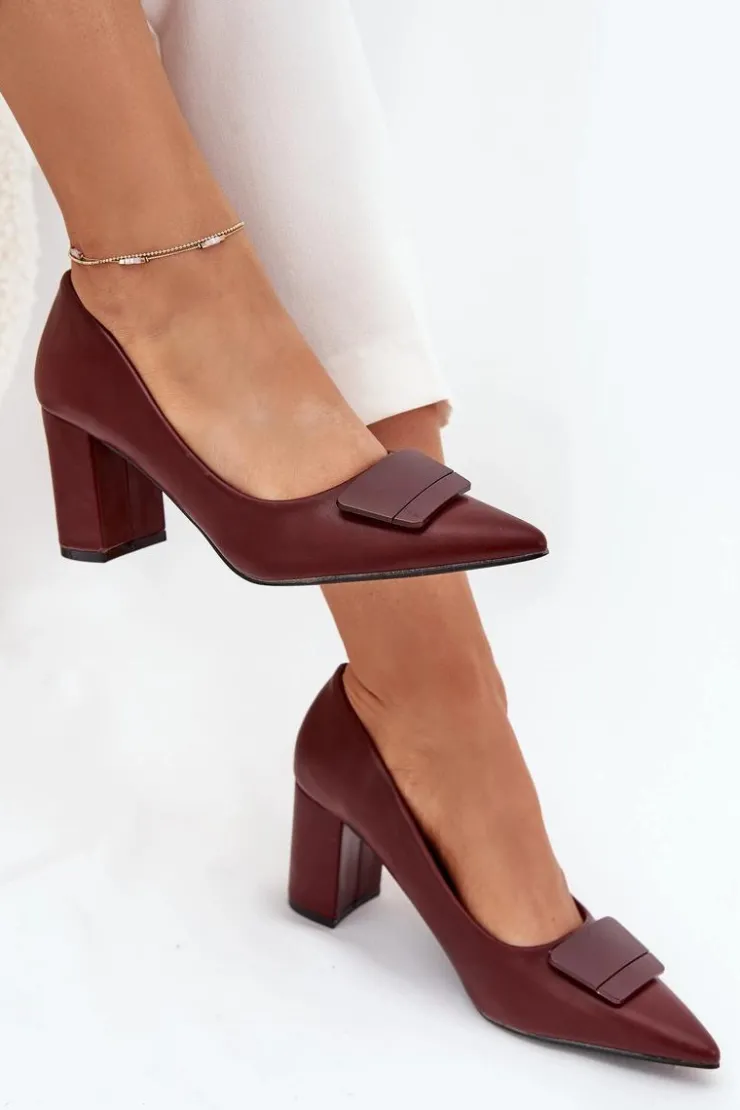 Czółenka damskie z eko skóry, osadzone na obcasie w formie słupka, łączą elegancję z wygodą. Szpiczaste noski wysmuklają nogi, a ozdobny detal z przodu dodaje im subtelnego uroku. Elegancki fason sprawia, że pasują do formalnych stylizacji, doskonale komponując się z sukienkami, spódnicami czy eleganckimi spodniami. Przy wyborze rozmiaru prosimy kierować się tabelą rozmiarów