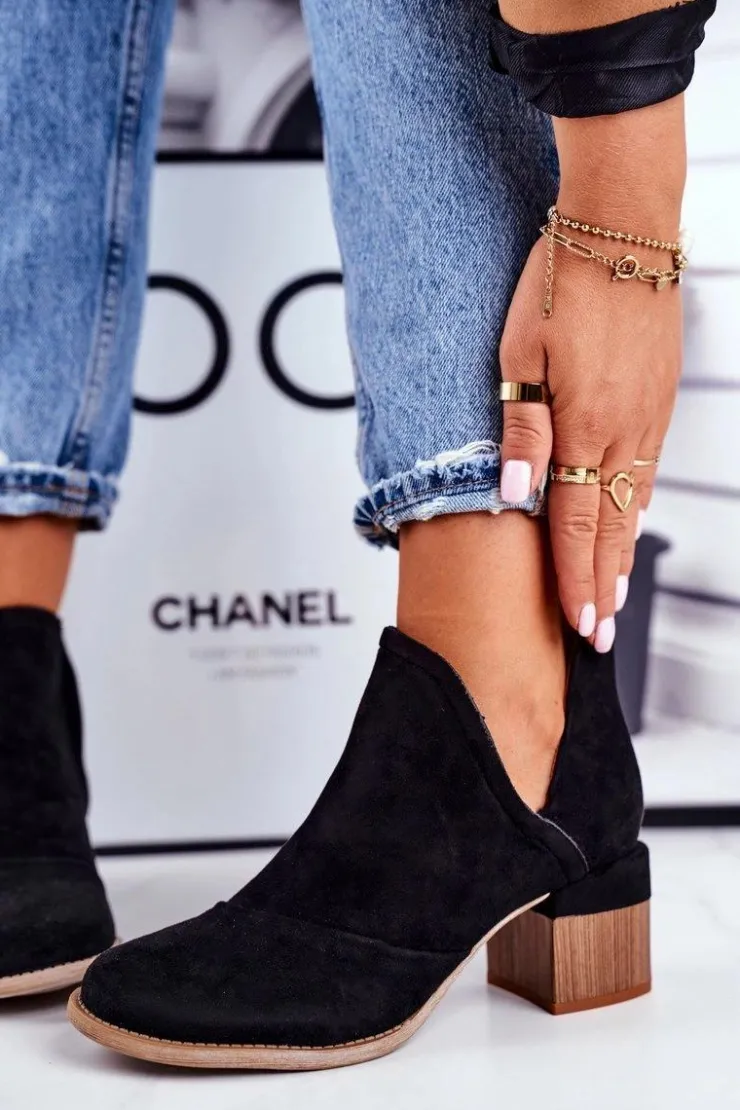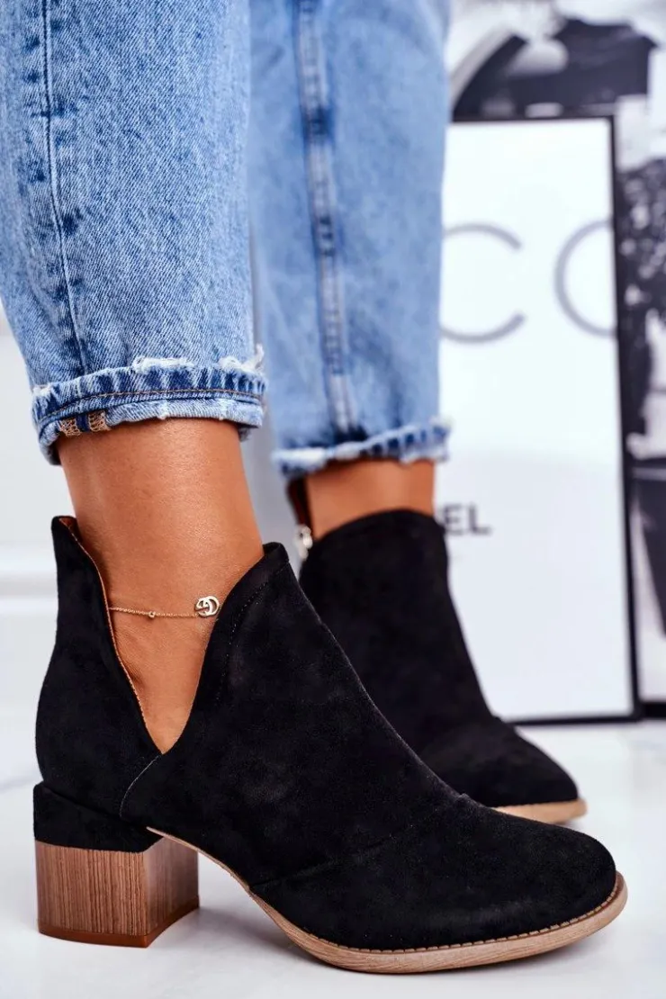 Online Boto Damskie Botki Na Słupku Wycięte Czarne Mini Meliori