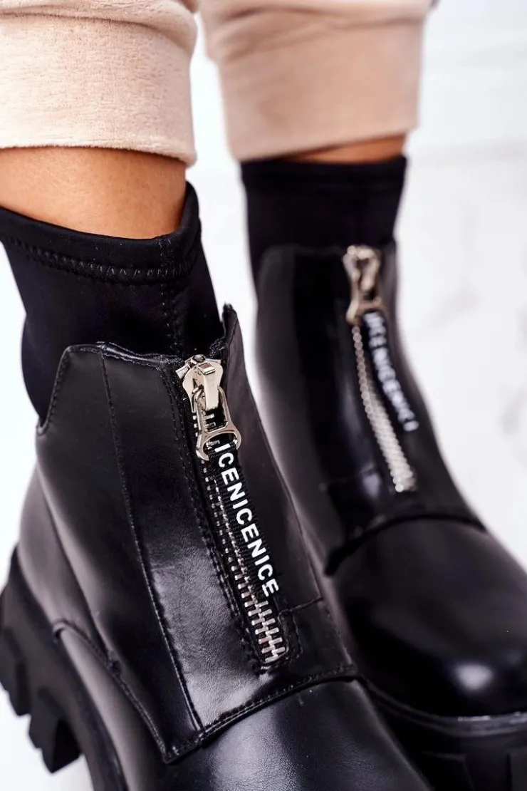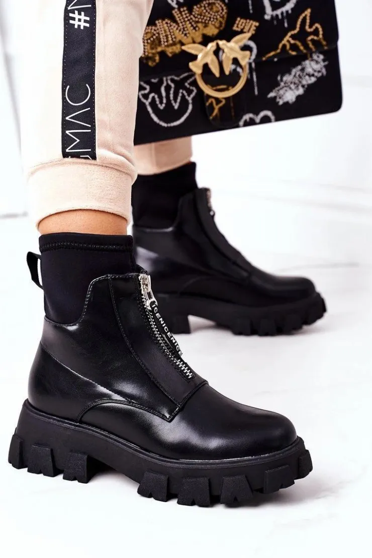 Piękne botki damskie z elastyczną, materiałową cholewką. Buty są wykonane z eko skóry. Zakładanie ułatwi wszyty suwak. Przy wyborze rozmiaru prosimy sugerować się tabelą rozmiarów.