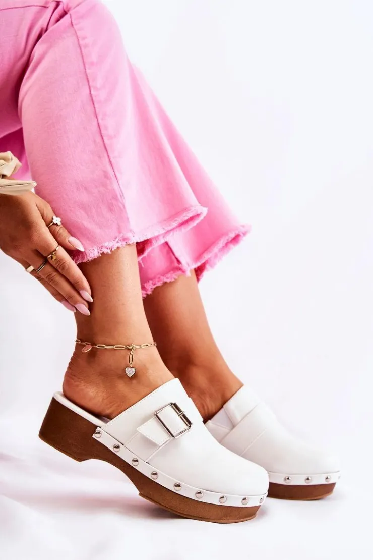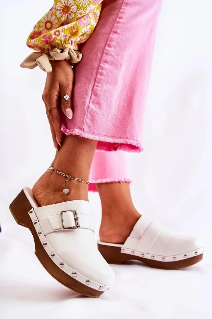 Online Boto Damskie Klapki Chodaki Na Obcasie Białe Ivette