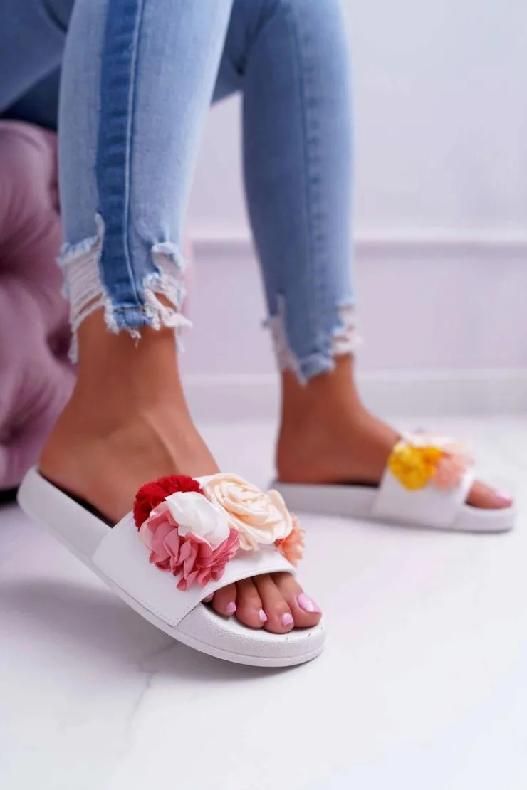 Online Boto Damskie Klapki Z Kwiatem Białe Della