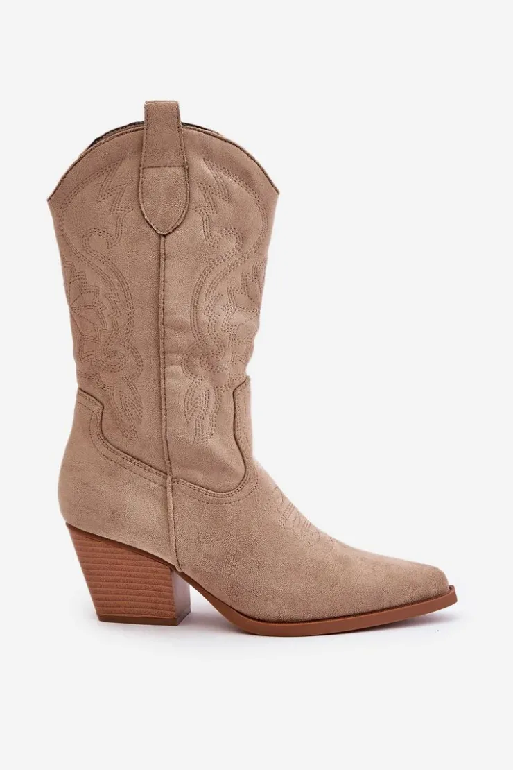 Stylowe damskie kozaki wykonane z eko zamszu to doskonały wybór dla każdej kobiety. Posiadają obcas w formie słupka i spiczaste noski, które dodają szyku każdej stylizacji. Model jest wsuwany, z dodatkowym zapięciem na zamek. Te kowbojskie kozaki doskonale dopełnią różnorodne stylizacji. To niezbędny element Twojej garderoby! Przy wyborze rozmiaru prosimy sugerować się tabelą rozmiarów.
