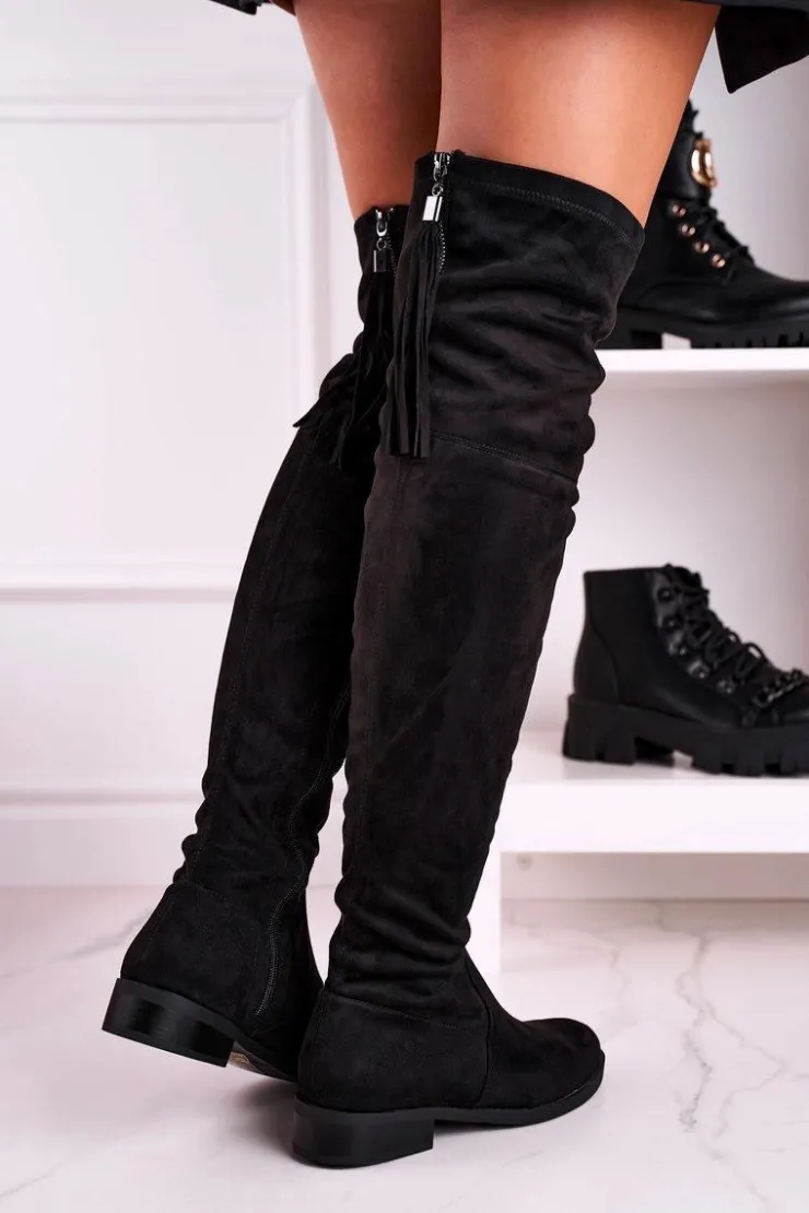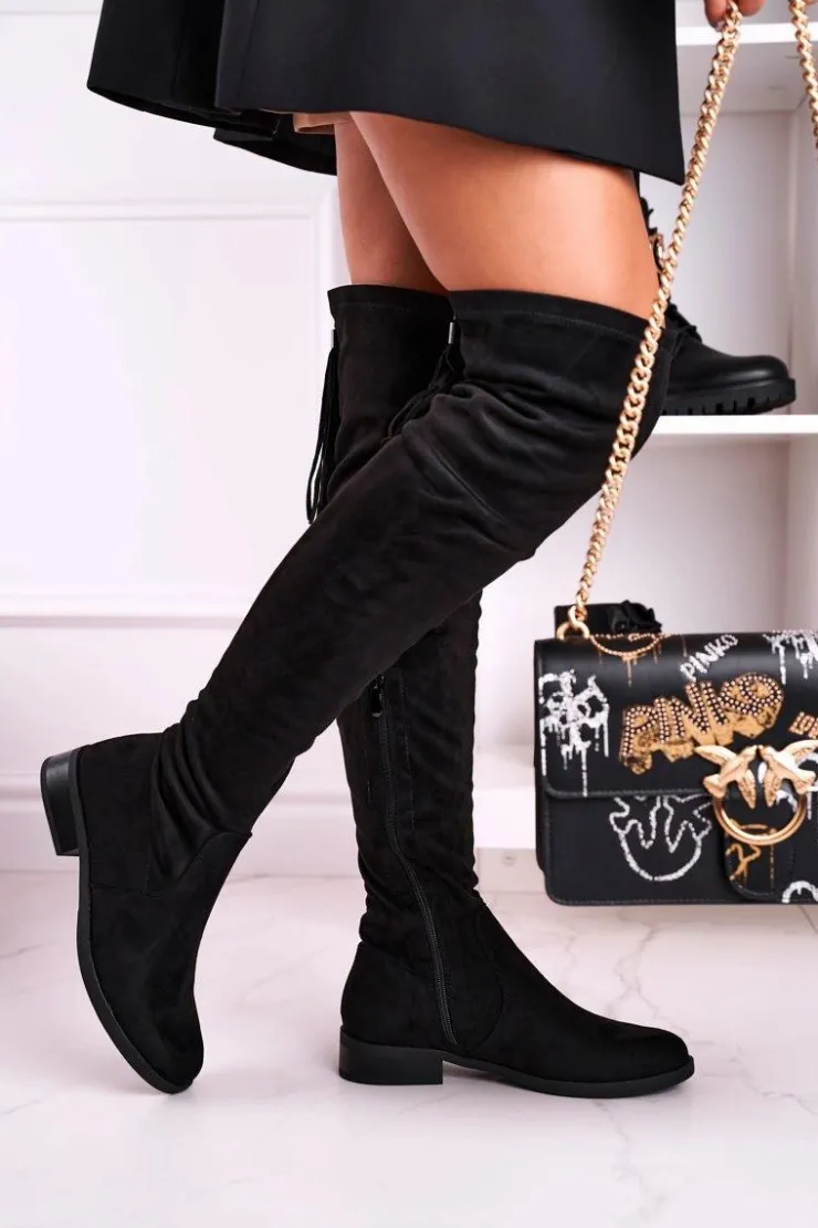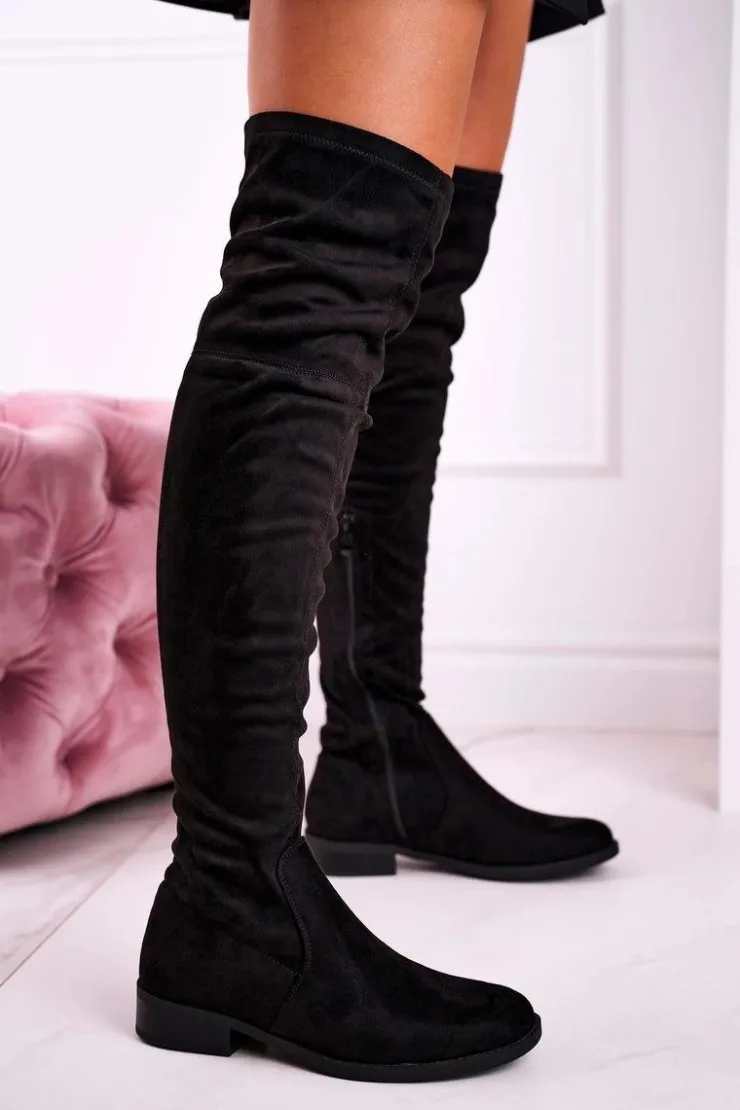Online Boto Damskie Kozaki Za Kolano Zamszowe Czarne Rebecca