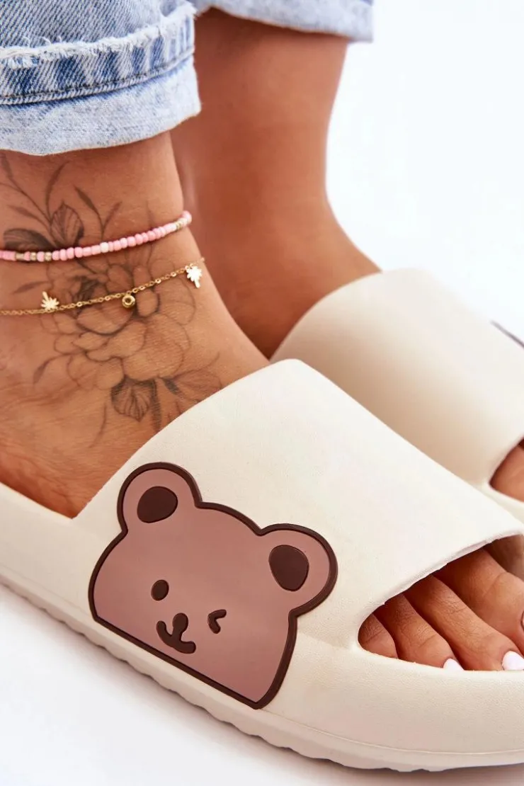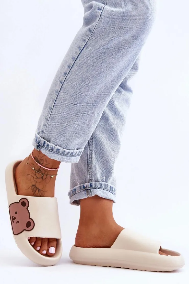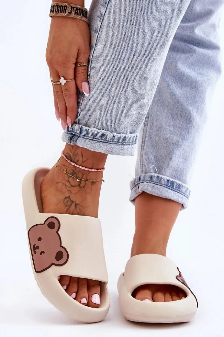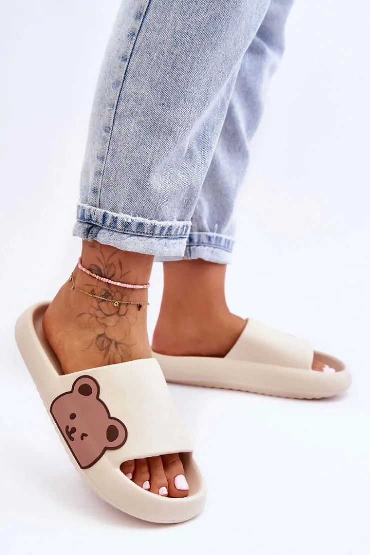 Urocze, damskie klapki zostały wykonane z piankowego tworzywa. Na boku cholewki znajduje się uroczy motyw misia. Model ten został osadzony na masywnej platformie. Możesz ich także używać jako obuwie domowe zamiast papci. Ten lekki model jest niezwykle wygodny podczas użytkowania. Koniecznie powinnaś je mieć! Przy wyborze rozmiaru prosimy sugerować się tabelą rozmiarów.