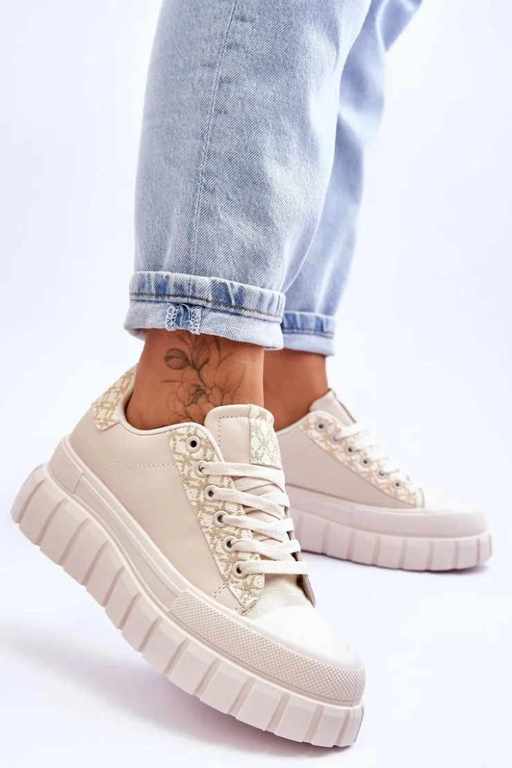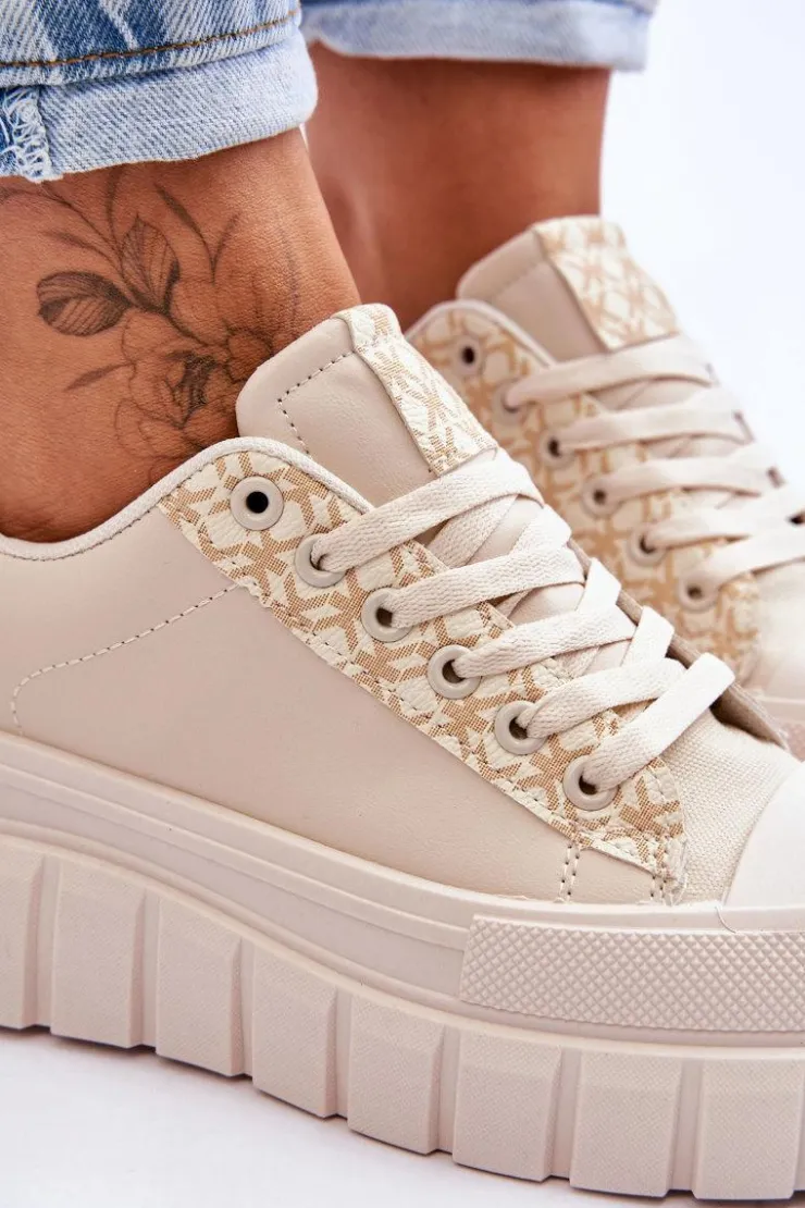 Wygodne, sportowe buty zostały wykonane z eko skóry z modnym wzorem. Model sznurowany. Buty zostały osadzone na masywnej platformie, która została wykonana z tworzywa. Miękka wkładka wykonana z materiału zapewni komfortowe użytkowanie. Nosek zaokrąglony. Model ten pasuje do wielu sportowych stylizacji. Przy wyborze rozmiaru prosimy kierować tabelą rozmiarów.