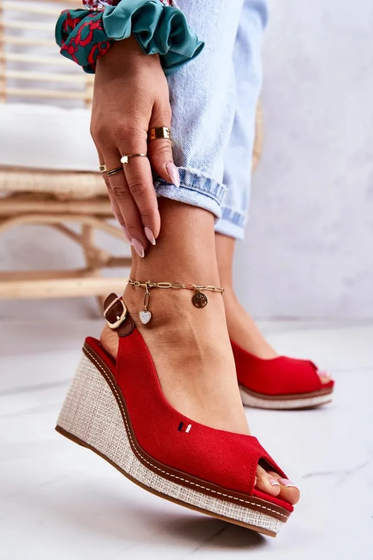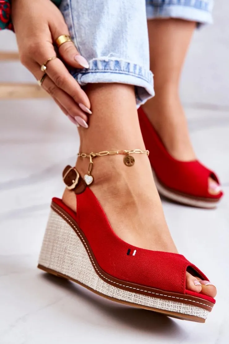 Piękne i wygodne sandały osadzone na obcasie w postaci koturnu. Modny kolor oraz ponadczasowy wzór. Sandały posiadają antypoślizgową podeszwę oraz koturn z plecionki. Wykonane z materiału tekstylnego. Posiadają regulowany pasek zapinany na sprzączkę. Posiadają odkrytą piętę i palce. Wkładka wykonana z połączenia materiału oraz wstawki z eko skóry. Koniecznie sprawdź całą naszą ofertę damskich sandałów! Przy wyborze rozmiaru prosimy sugerować się tabelą rozmiarów.
