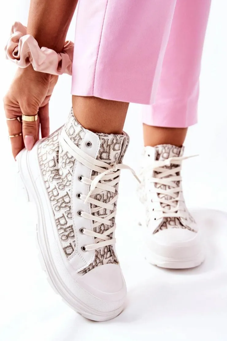 Damskie trampki na grubej podeszwie. Kultowe już trampki, które pasują do wielu stylizacji. Cholewka wykonana z materiału z wyszytym modnym printem. Buty dobrze dopasowują się do kształtu stopy, posiadają miękką materiałową wkładkę. Koniecznie sprawdź całą naszą kolekcję trampek damskich. Przy wyborze rozmiaru prosimy sugerować się tabelą rozmiarów.