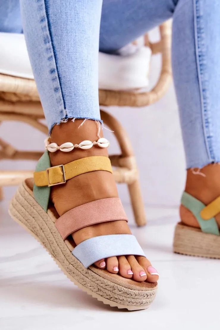 Sandały na niewysokim koturnie, wykończone jutowym warkoczem. Z szerokimi paskami oraz regulowanym paskiem przy kostce zapinanym na kwadratową sprzączkę. Wyposażone w miękką, komfortową wkładkę. Wykonane z zamszowej eko skóry. Te sandały idealnie sprawdzą się do basicowych stylizacji, sukienek boho czy nawet klasycznych jeansów. Przy wyborze rozmiaru prosimy kierować się tabelą rozmiarów.