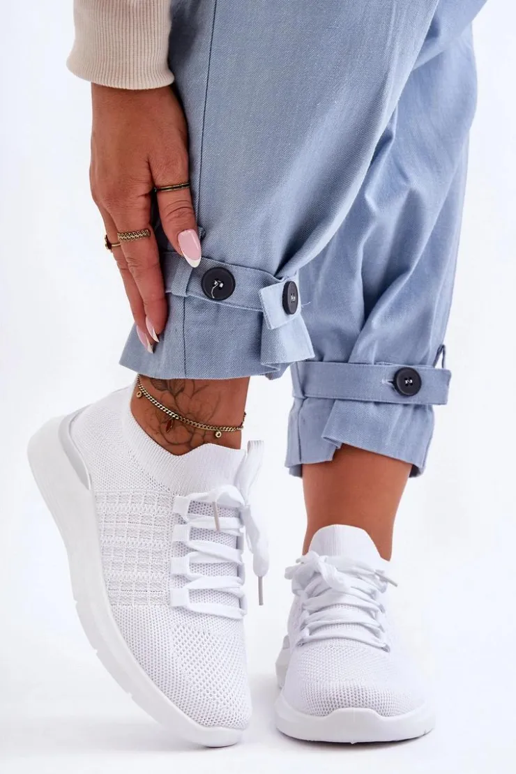 Klasyczne, skarpetkowe sportowe buty damskie zostały wykonane z przewiewnego materiału. Cholewka do kostki. Wsuwane z ozdobnym wiązaniem na górze. Buty zostały osadzone na platformie z gumowego tworzywa. Model wygodny w użytkowaniu. Przy wyborze rozmiaru prosimy kierować się tabelą rozmiarów.