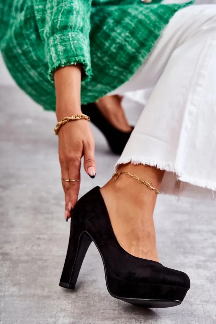 Online Boto Klasyczne Zamszowe Czółenka Na Obcasie Czarne Soro