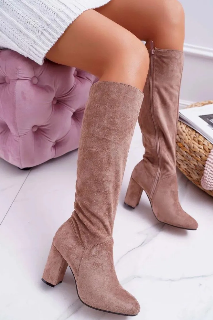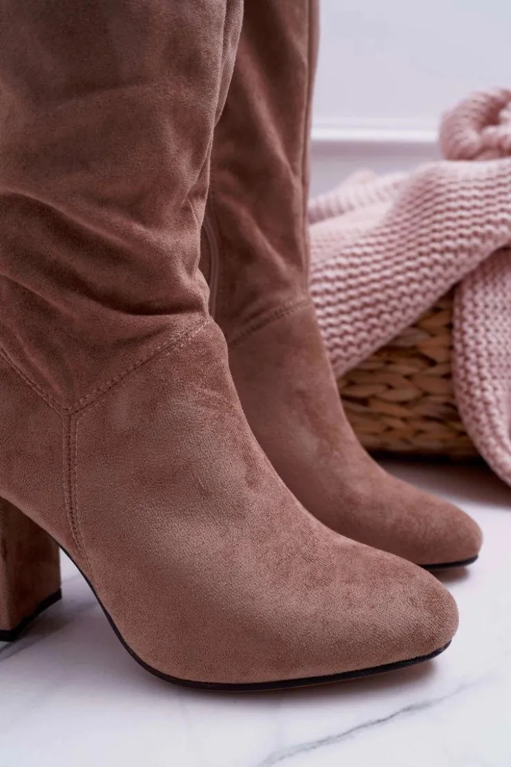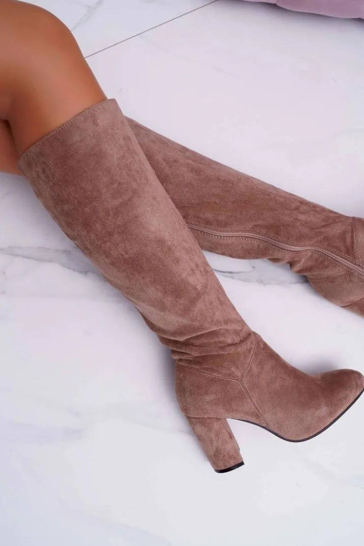Online Boto Kozaki Damskie Na Słupku Do Kolana Khaki Mercure