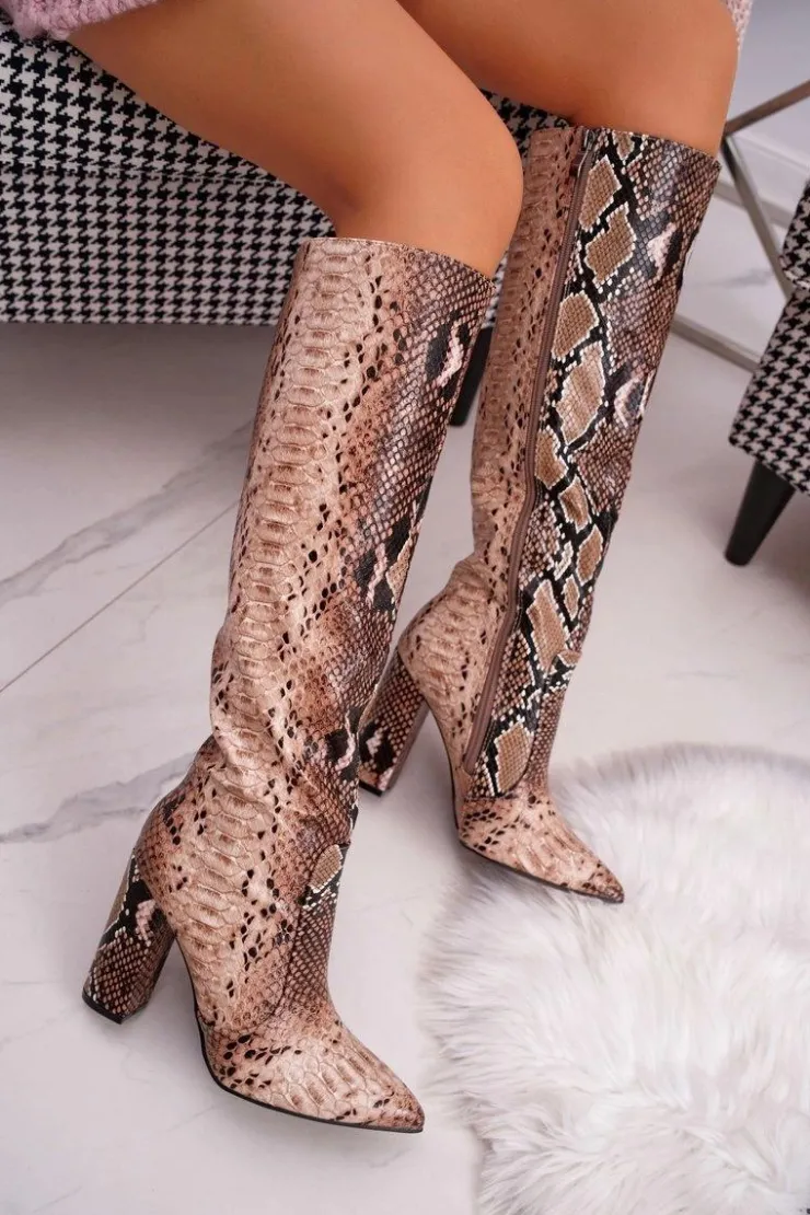 Niezwykle wygodne i stylowe kozaki! Zwierzęca faktura. Subtelny słupek wydłuży i wysmukli Twoją sylwetkę. Delikatne ocieplenie w postaci koca obuwniczego zadba o nasz komfort nawet w najchłodniejsze dni. Uwaga! Kozaki mogą się różnić fakturą obuwia względem tych na zdjęciu. Lewy i prawy but mogą mieć różne faktury.Przy wyborze rozmiaru prosimy kierować tabelą rozmiarów.