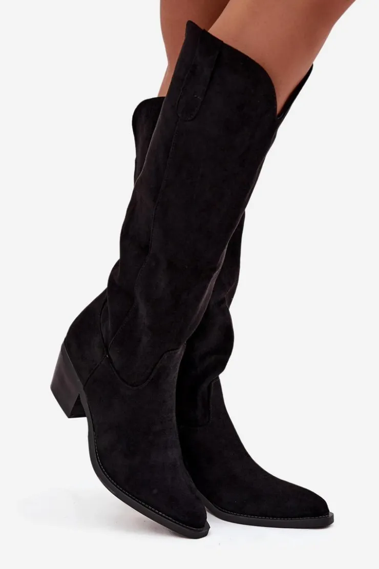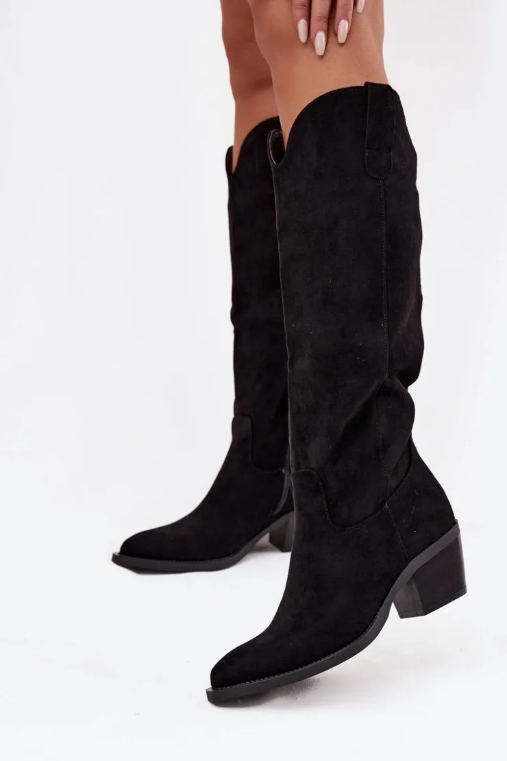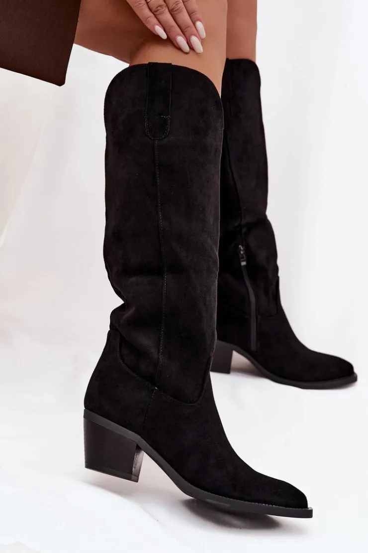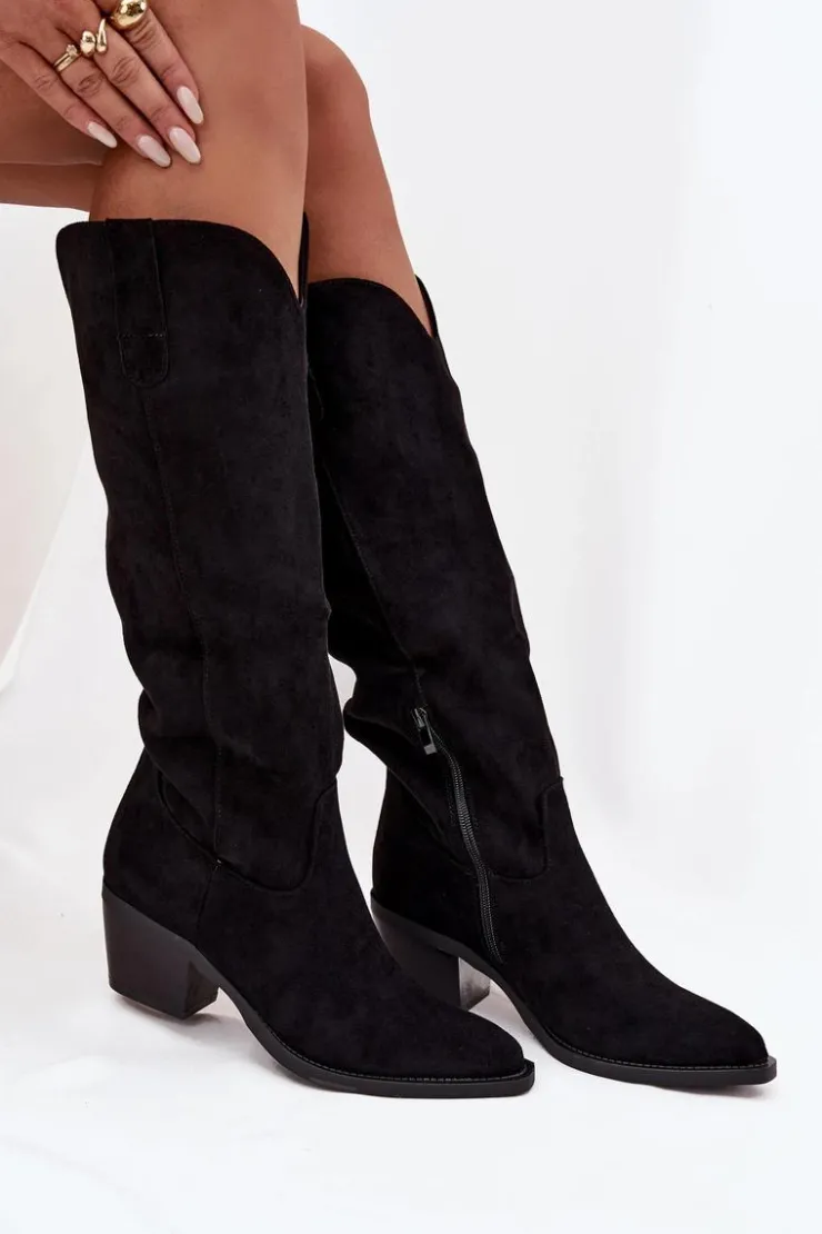 Kozaki damskie w stylu kowbojek, wykonane z eko zamszu. Osadzone na charakterystycznym, ściętym obcasie, dodają sylwetce lekkości i podkreślają kobiecy styl. Migdałowe noski nadają całości subtelności, a wsuwany fason z dodatkowym zapięciem na zamek zapewnia wygodę zakładania i idealne dopasowanie do nogi. To model, który doskonale wpisuje się w aktualne trendy – świetnie prezentuje się zarówno z sukienkami i spódnicami, jak i z dopasowanymi spodniami typu skinny. Stylowe i uniwersalne, staną się efektownym uzupełnieniem jesienno-zimowych stylizacji. Przy wyborze rozmiaru prosimy sugerować się poniższą tabelą rozmiarów.