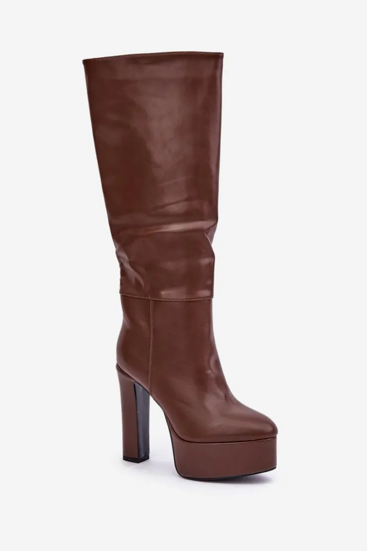 Online Boto Kozaki Na Słupku I Platformie Z Eko Skóry Brązowe Felilorn Brązowy