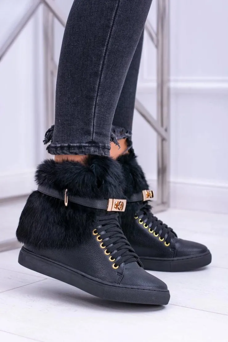 Online Boto Lu Boo Czarne Botki z Naturalnym Futrem Gisele