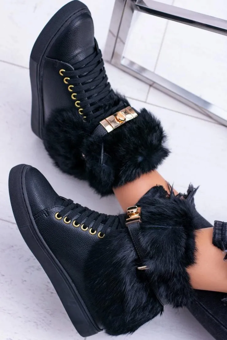 Buty, które pokochały kobiety na całym świecie, teraz dostępne w wersji zdobionej grubym naturalnym futerkiem! Nie daj się zaskoczyć zimie i spraw sobie rozkosz podczas tych mroźnych dni. Buty noszone przez największe gwiazdy. Złote dodatki w postaci zamka oracz oczek idealnie wpasowują się w aktualne oraz nadchodzące trendy! Delikatny koturn zapewni Ci komfort podczas zimowych spacerów a delikatnie ocieplenie w postaci „Pluszowego misia” otuli twe stopy niczym puch. Skomponowanie idealnej stylizacji z tymi butami nie jest niczym trudnym. Dostępne w kilku wersjach i kolorach!