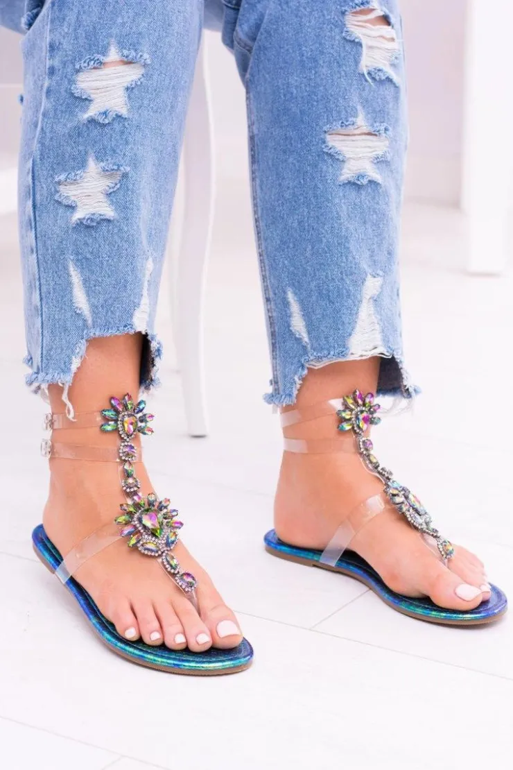 Eleganckie sandałki z cyrkoniami dla każdej kobiety! Model Nomire od Lu Boo wyróżnia się wysoką jakością wykonania oraz niecodziennym stylem. Przeźroczysty pasek zdobiony mieniącymi się cekinami sprawi, że będziesz mogła je nosić nie tylko do letnich stylizacji ale także podczas bardziej szykownych wyjść. Idealnie leżą na nodze dzięki zapinaniu na pasek.