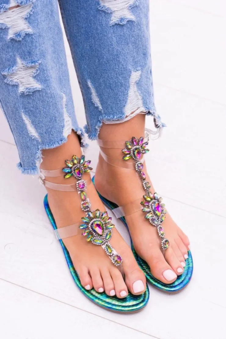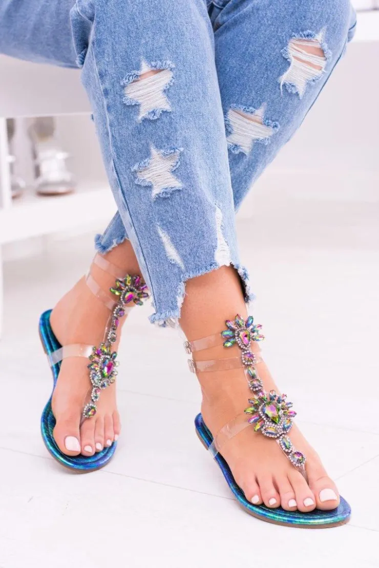 Online Boto Lu Boo Eleganckie Benzynowe Sandały Cyrkonie Nomire