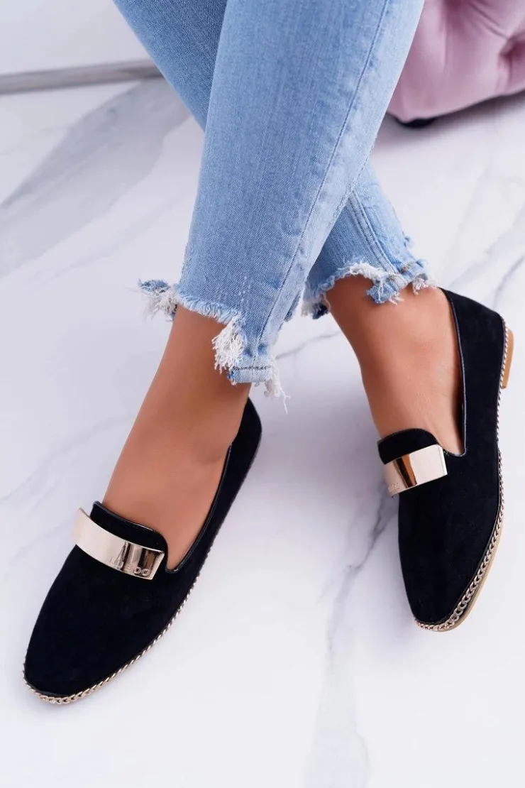 Zamszowe mokasyny to buty, które nigdy nie wyjdą z mody, a na pewno nie te od firmy Lu Boo. Pasują zarówno do codziennych stylizacji jak i tych bardziej eleganckich. Delikatny wierzch w połączeniu z delikatną profilowaną wkładką to gwarancja niesamowitego komfortu o jakim zawsze marzymy. Złote dodatki w postaci blaszki oraz łańcuszka są wspaniałym dodatkiem. Więc nie zwlekaj i kup je już teraz 🙂 Mniejsza rozmiarówka. Sugerujemy wybrać rozmiar większy niż zazwyczaj nosisz.