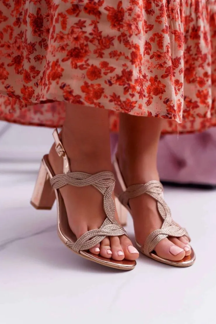 Wspaniałe eleganckie sandały, które idealnie sprawdzą się w każdej wieczorowej stylizacji. Modny wzór na słupku oraz piękna cholewka z plecionego sznurka. Klasyczne zapinanie wokół kostki sprawia że stają się jeszcze bardziej eleganckie. Według opinii klientek, sandały są bardzo wygodne i świetnie leżą na nodze. Przy wyborze rozmiaru prosimy sugerować się tabelą rozmiarów, która dostępna jest po najechaniu bądź kliknięciu w dany rozmiar.