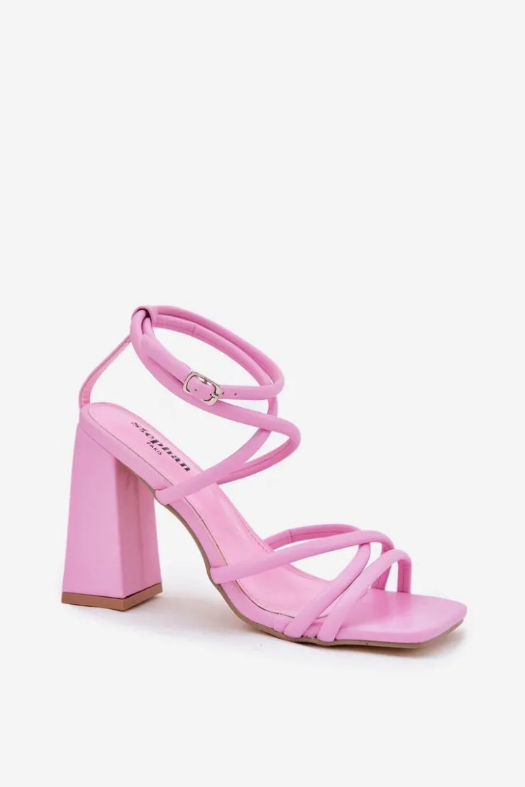 Online Boto Sandały Damskie Na Słupku Z Paskami Różowe Ciarilora Różowy